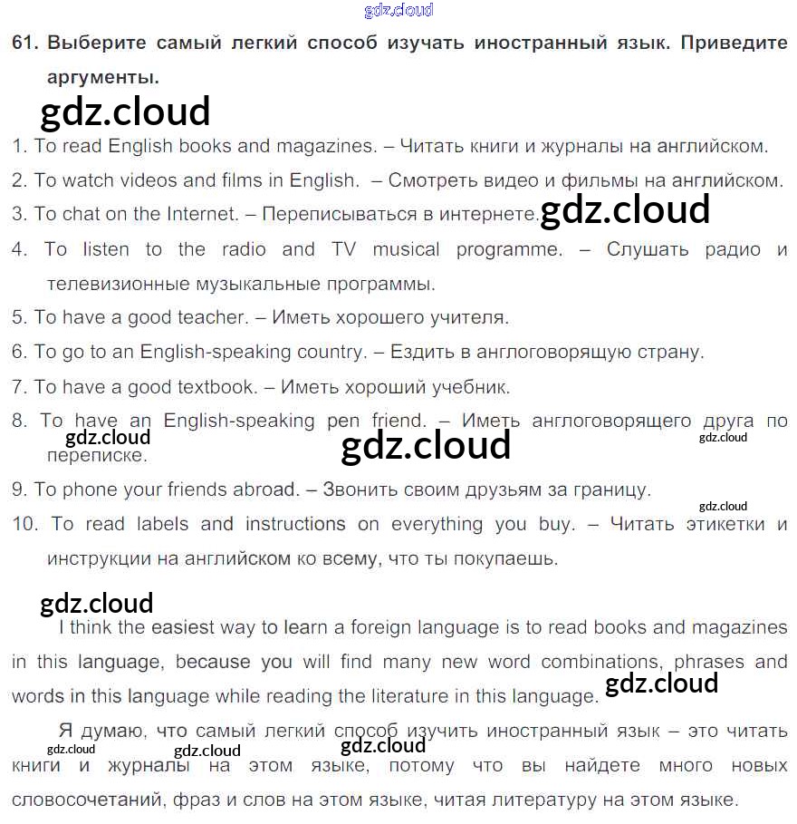 Ответ на задание 61 Учебник Английский язык за 7 (седьмой) класс Биболетова, Трубанева УМК 2015, 2017