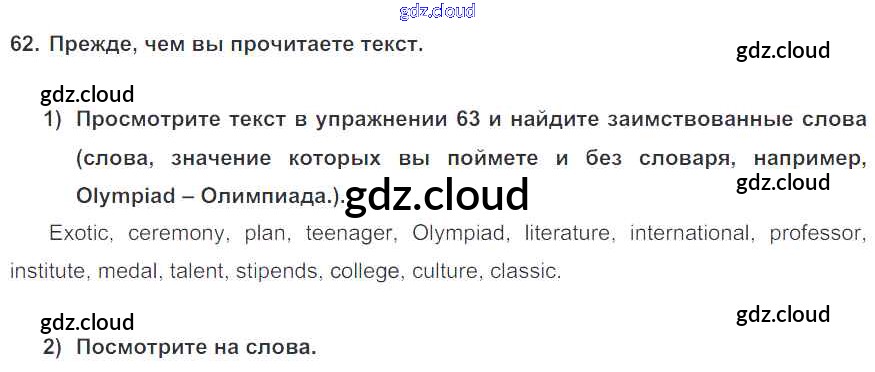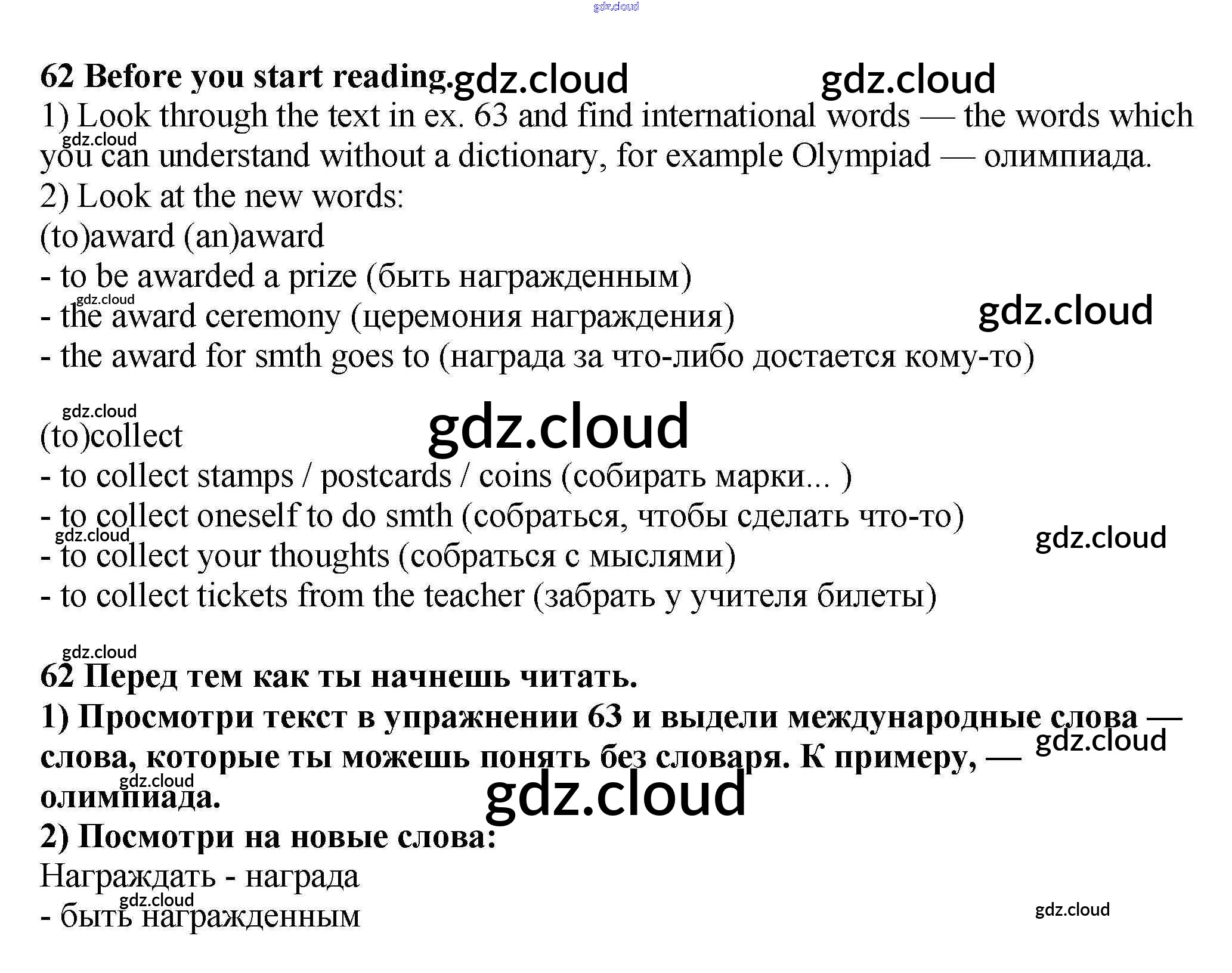 Ответ на задание 62 Учебник Английский язык  за 7 (седьмой) класс Биболетова, Трубанева УМК  2015, 2017