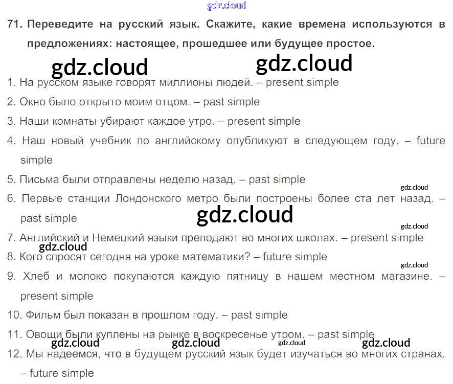 Ответ на задание 71 Учебник Английский язык  за 7 (седьмой) класс Биболетова, Трубанева УМК  2015, 2017