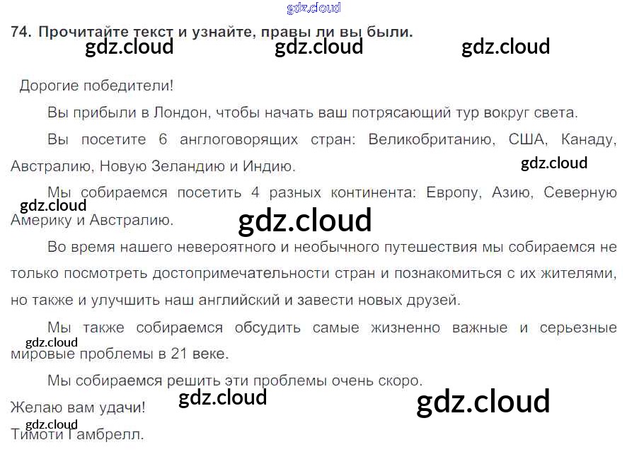 Ответ на задание 74 Учебник Английский язык за 7 (седьмой) класс Биболетова, Трубанева УМК 2015, 2017