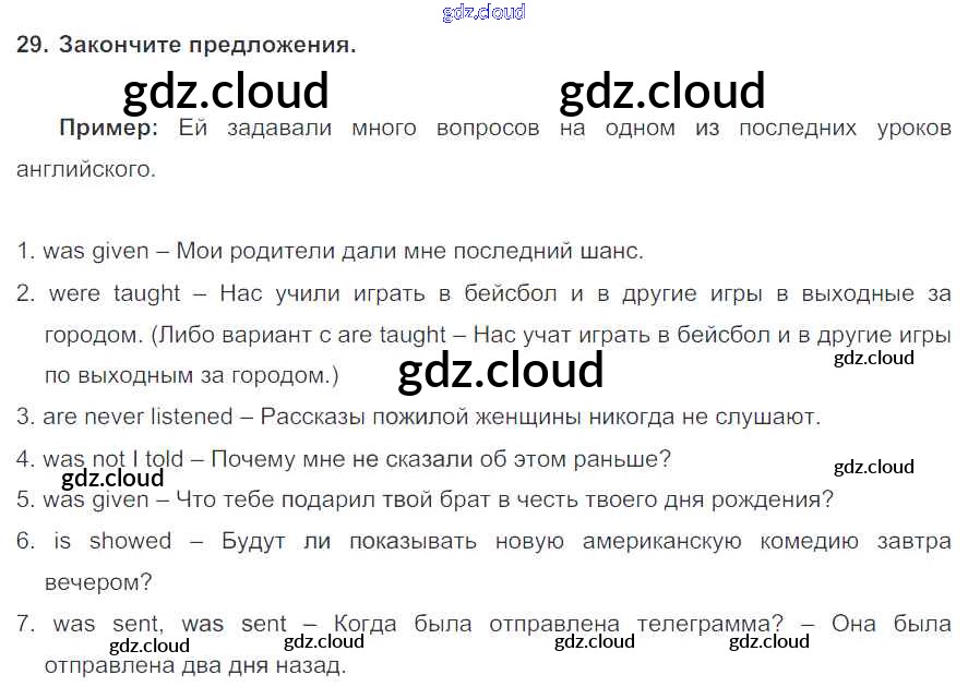 Ответ на задание 29 Учебник Английский язык  за 7 (седьмой) класс Биболетова, Трубанева УМК  2015, 2017