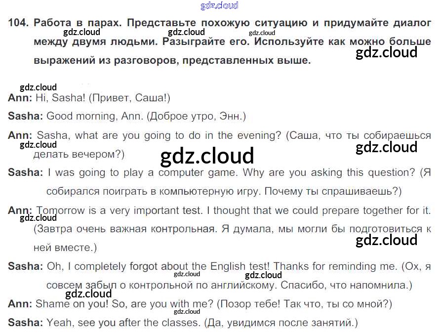 Ответ на задание 104 Учебник Английский язык  за 7 (седьмой) класс Биболетова, Трубанева УМК  2015, 2017