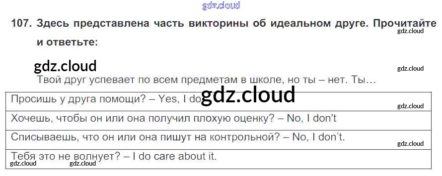 Ответ на задание 107 Учебник Английский язык  за 7 (седьмой) класс Биболетова, Трубанева УМК  2015, 2017