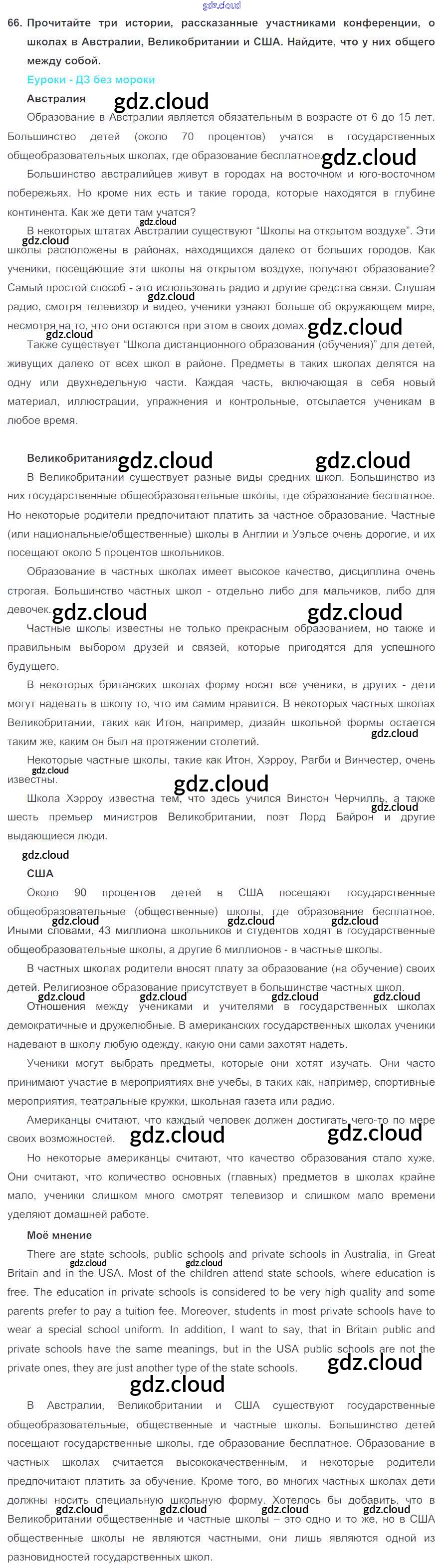 Ответ на задание 66 Учебник Английский язык  за 7 (седьмой) класс Биболетова, Трубанева УМК  2015, 2017