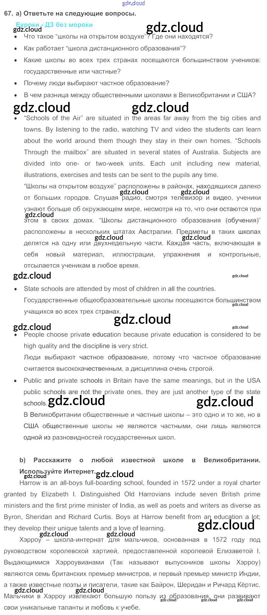 Ответ на задание 67 Учебник Английский язык за 7 (седьмой) класс Биболетова, Трубанева УМК 2015, 2017