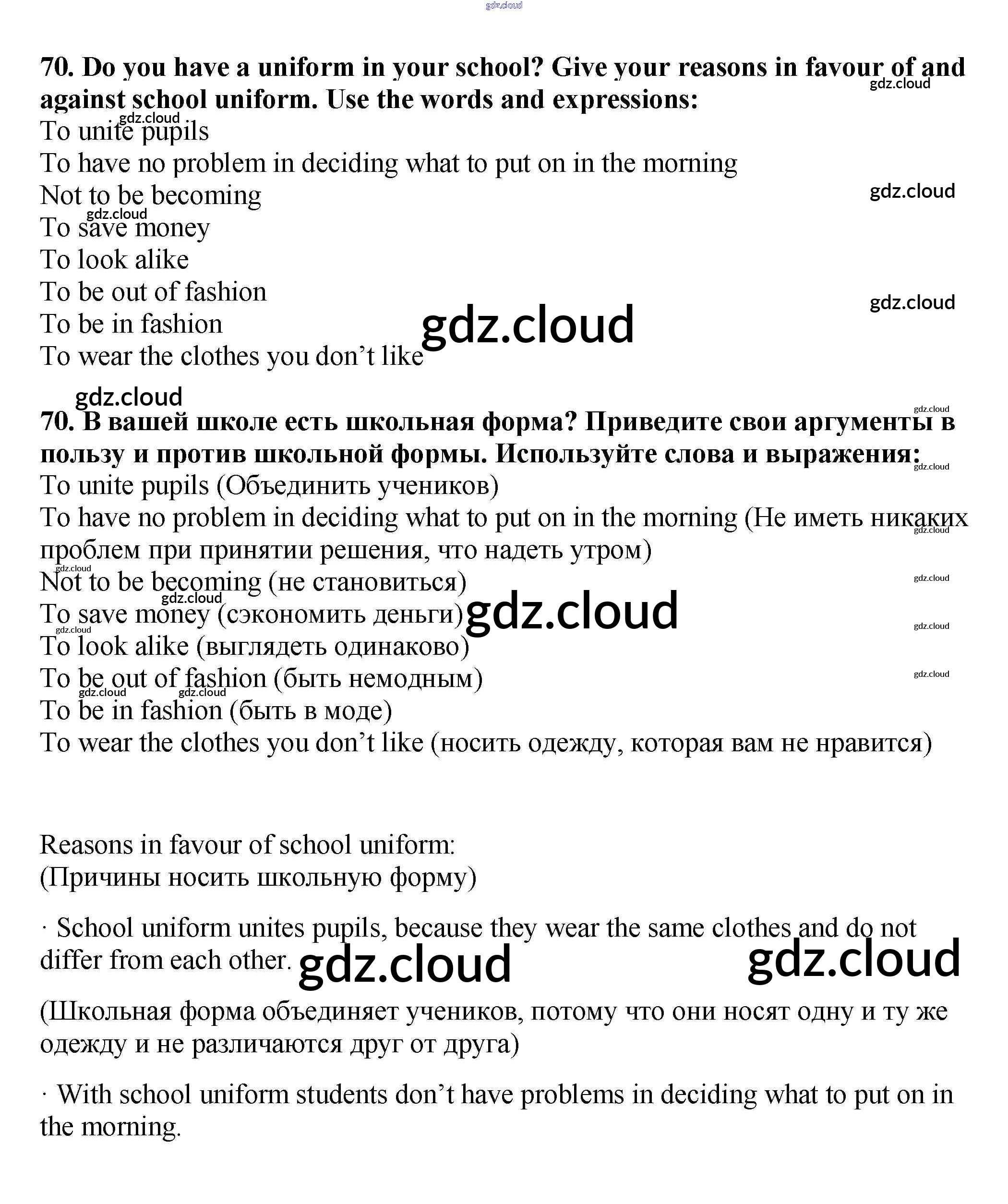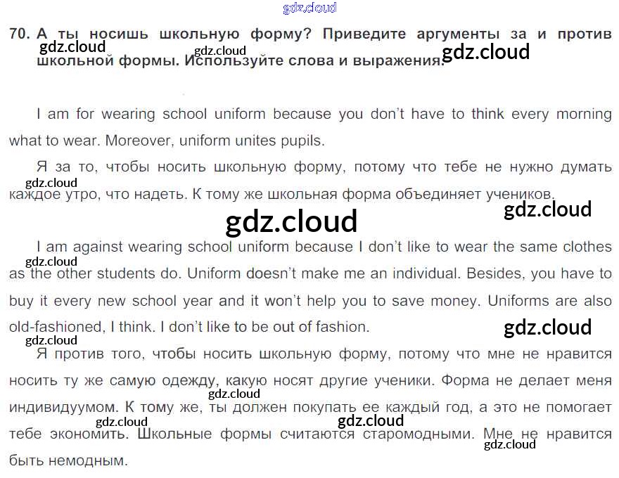 Ответ на задание 70 Учебник Английский язык  за 7 (седьмой) класс Биболетова, Трубанева УМК  2015, 2017