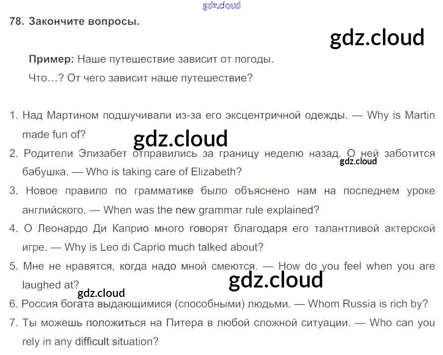Ответ на задание 78 Учебник Английский язык  за 7 (седьмой) класс Биболетова, Трубанева УМК  2015, 2017