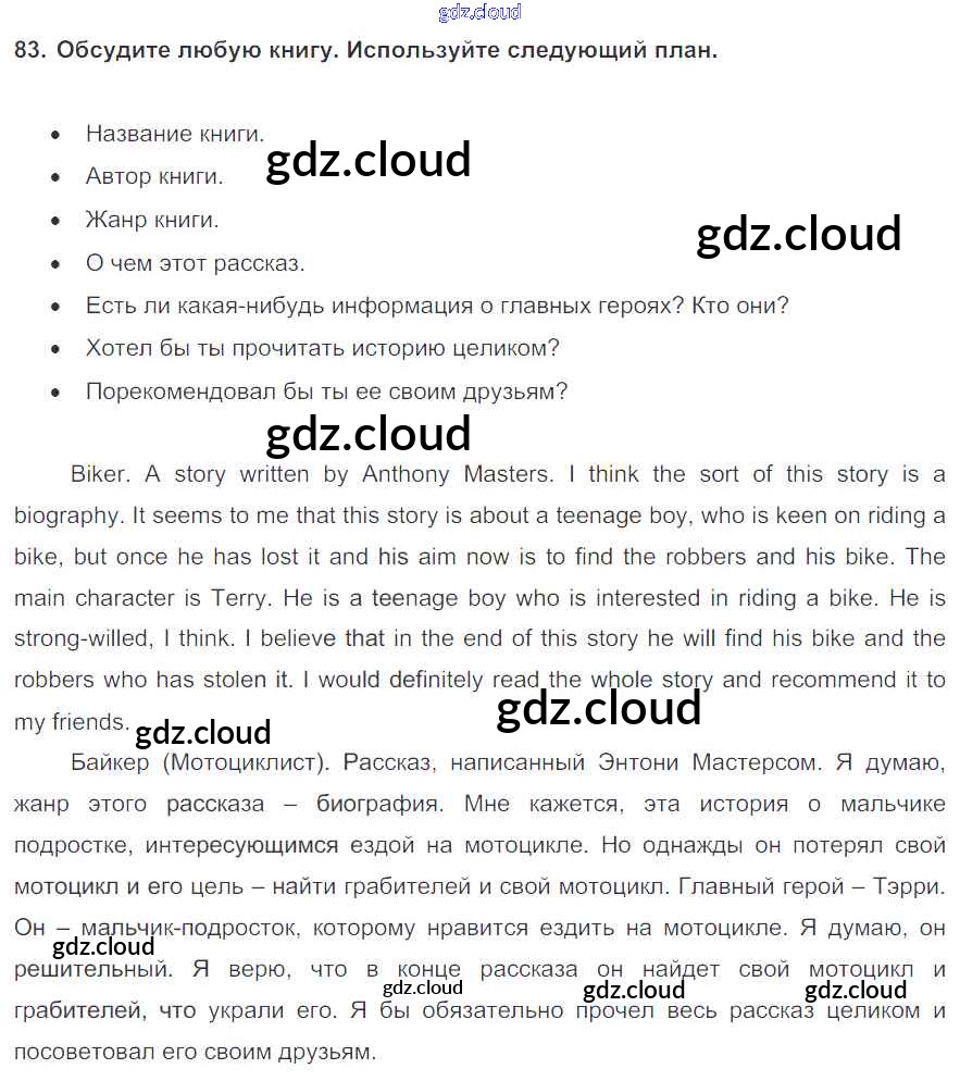 Ответ на задание 83 Учебник Английский язык  за 7 (седьмой) класс Биболетова, Трубанева УМК  2015, 2017