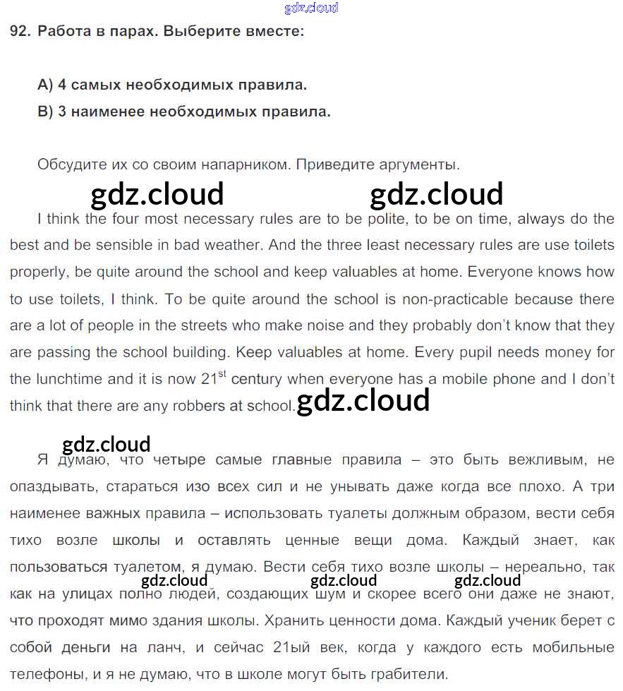 Ответ на задание 92 Учебник Английский язык  за 7 (седьмой) класс Биболетова, Трубанева УМК  2015, 2017