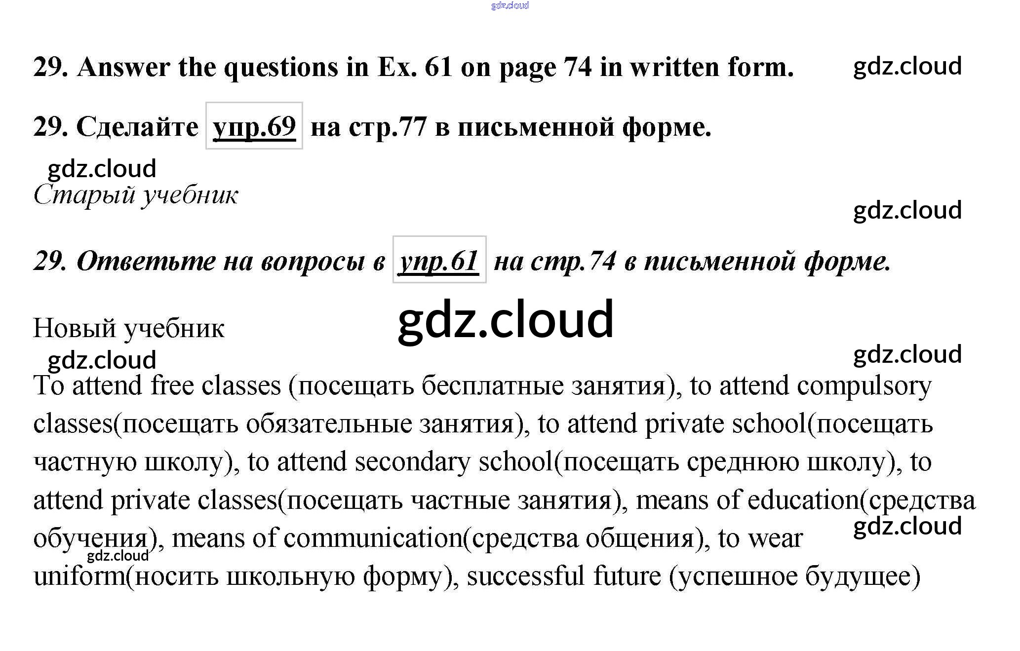 Ответ на задание 29 Учебник Английский язык  за 7 (седьмой) класс Биболетова, Трубанева УМК  2015, 2017