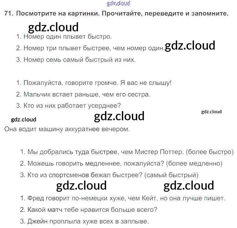 Ответ на задание 71 Учебник Английский язык  за 7 (седьмой) класс Биболетова, Трубанева УМК  2015, 2017