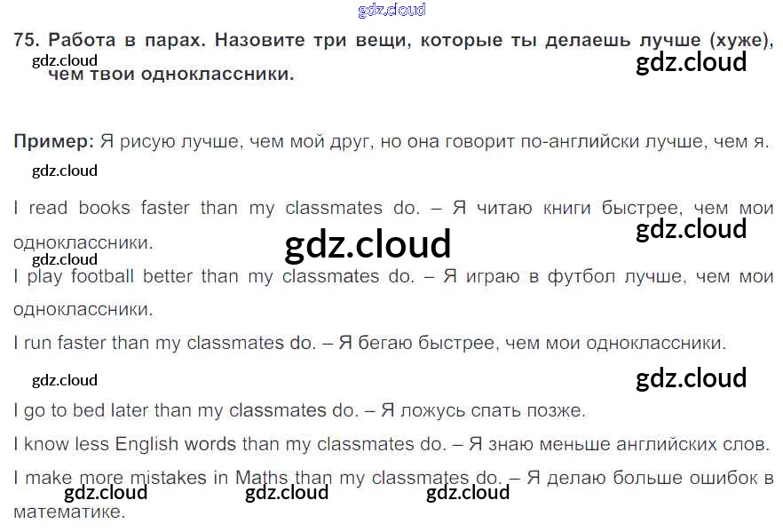 Ответ на задание 75 Учебник Английский язык за 7 (седьмой) класс Биболетова, Трубанева УМК 2015, 2017