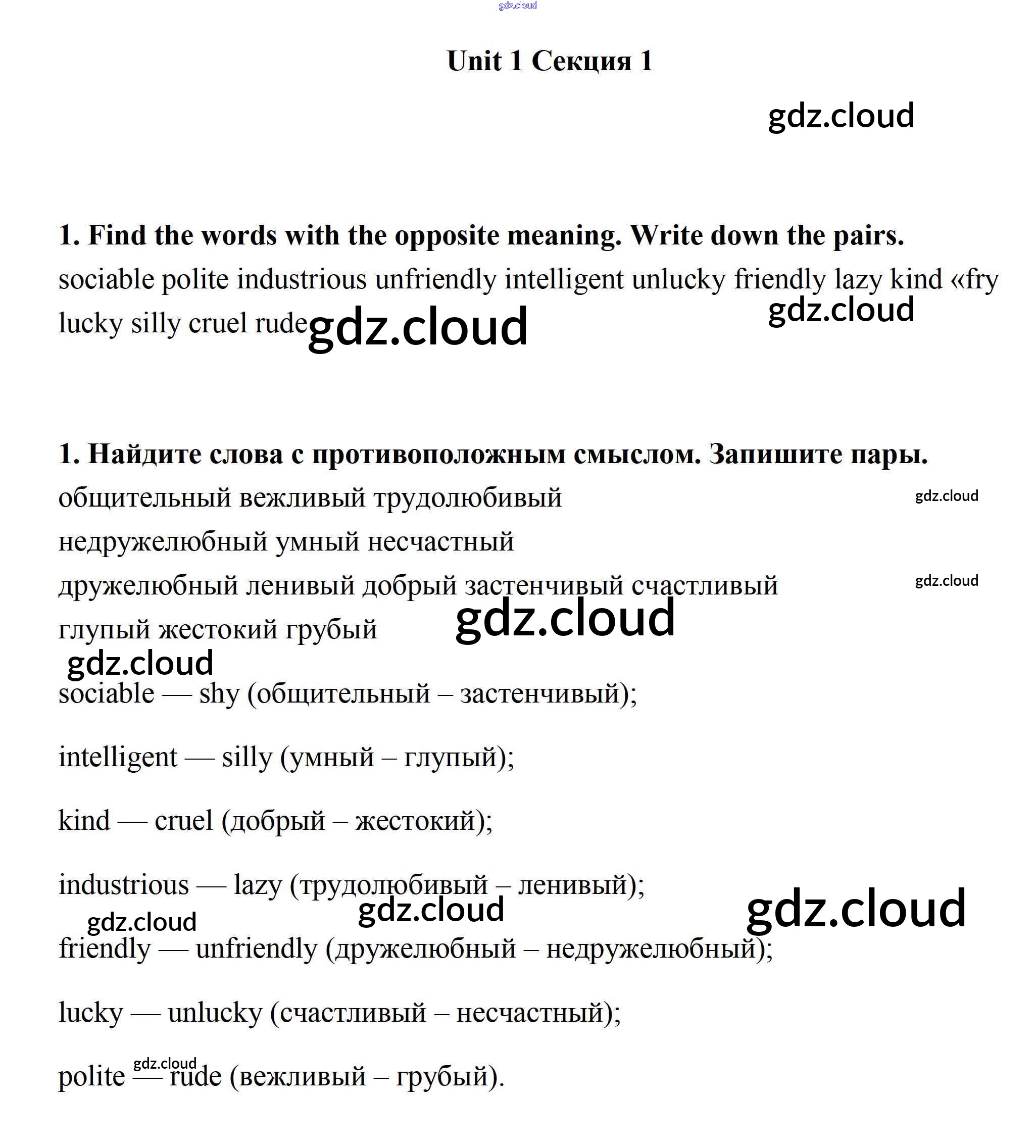Секция 1 Ответы к Unit 1 по Английскому языку 7 класс Рабочая тетрадь Биболетова Enjoy English   Титул