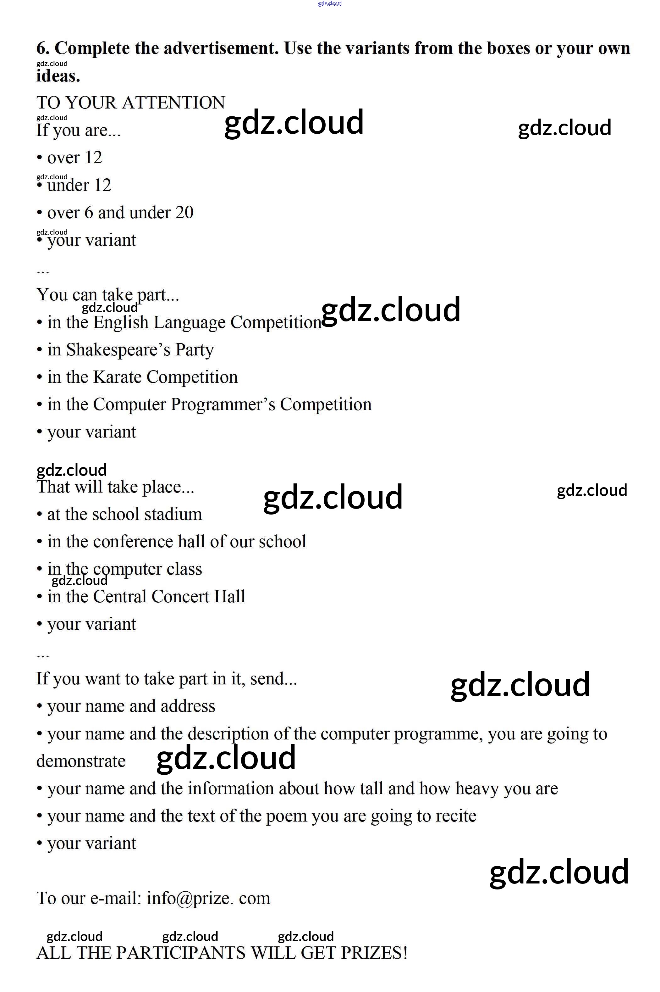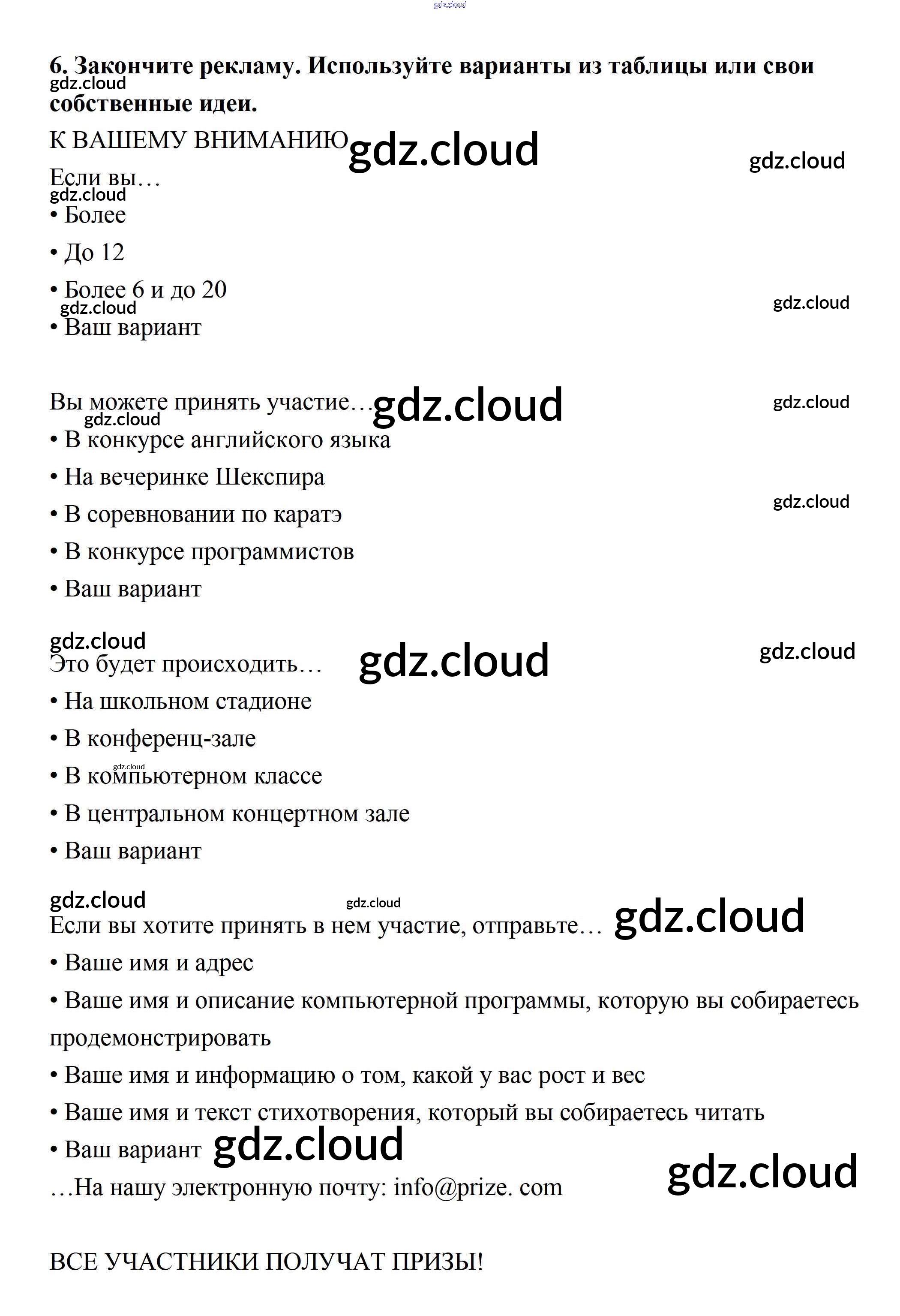 Ответ на задание 6 Рабочая тетрадь Английский язык  за 7 (седьмой) класс Биболетова, Бабушис Enjoy English  2015