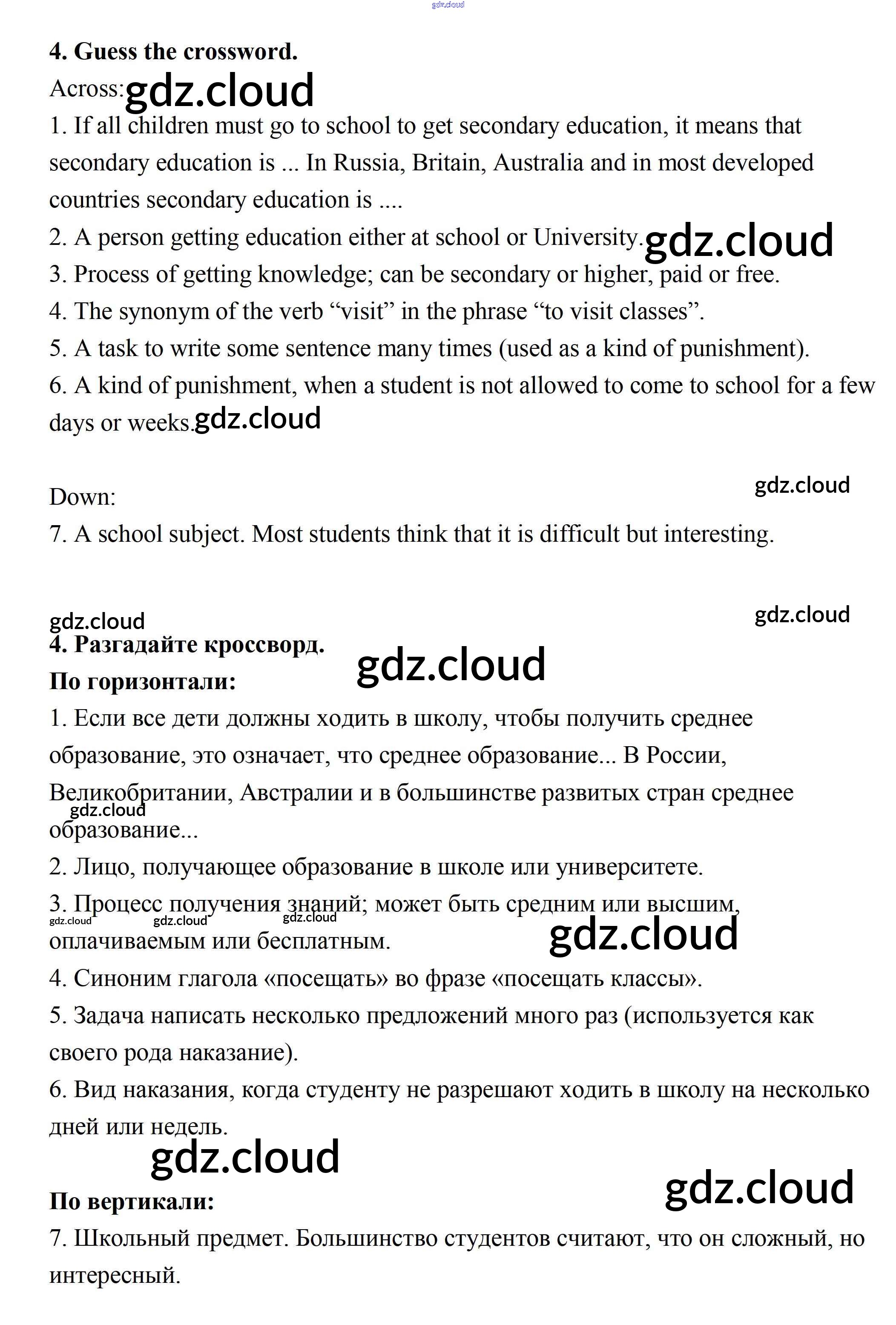 Ответ на задание 4 Рабочая тетрадь Английский язык  за 7 (седьмой) класс Биболетова, Бабушис Enjoy English  2015