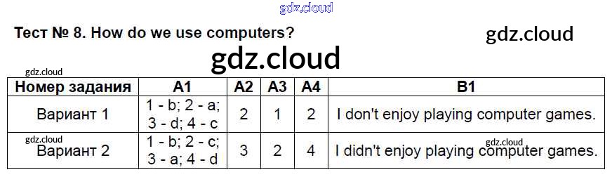 Ответ на задание 8 Контрольно-измерительные материалы (КИМ) Английский язык за 7 (седьмой) класс Артюхова 2017 ФГОС онлайн и без номера телефона.
