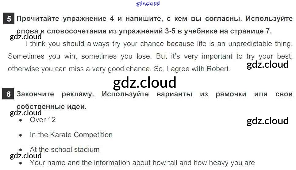Ответ на задание 5 Рабочая тетрадь Английский язык за 7 (седьмой) класс Биболетова, Бабушис Enjoy English 2016
