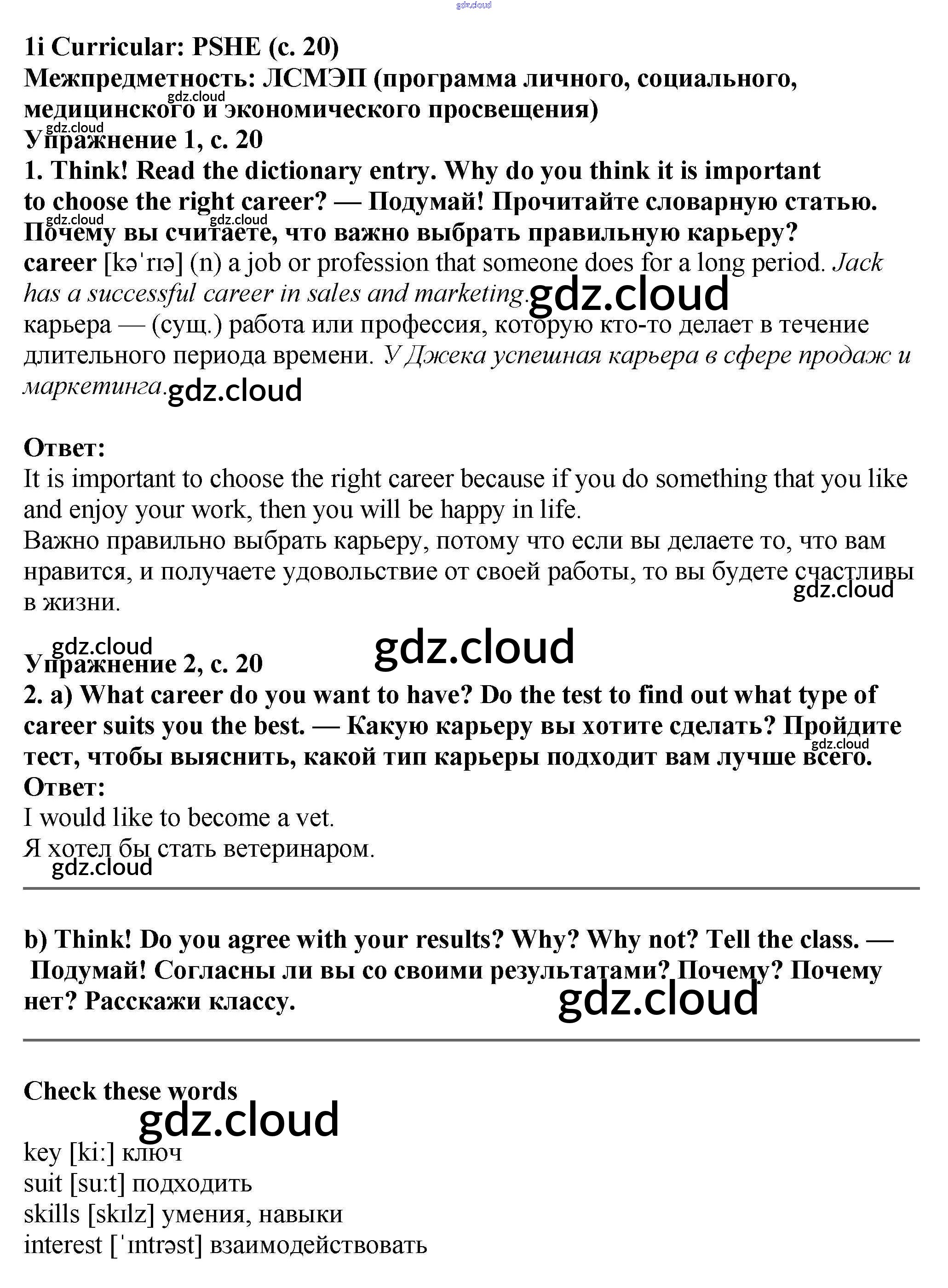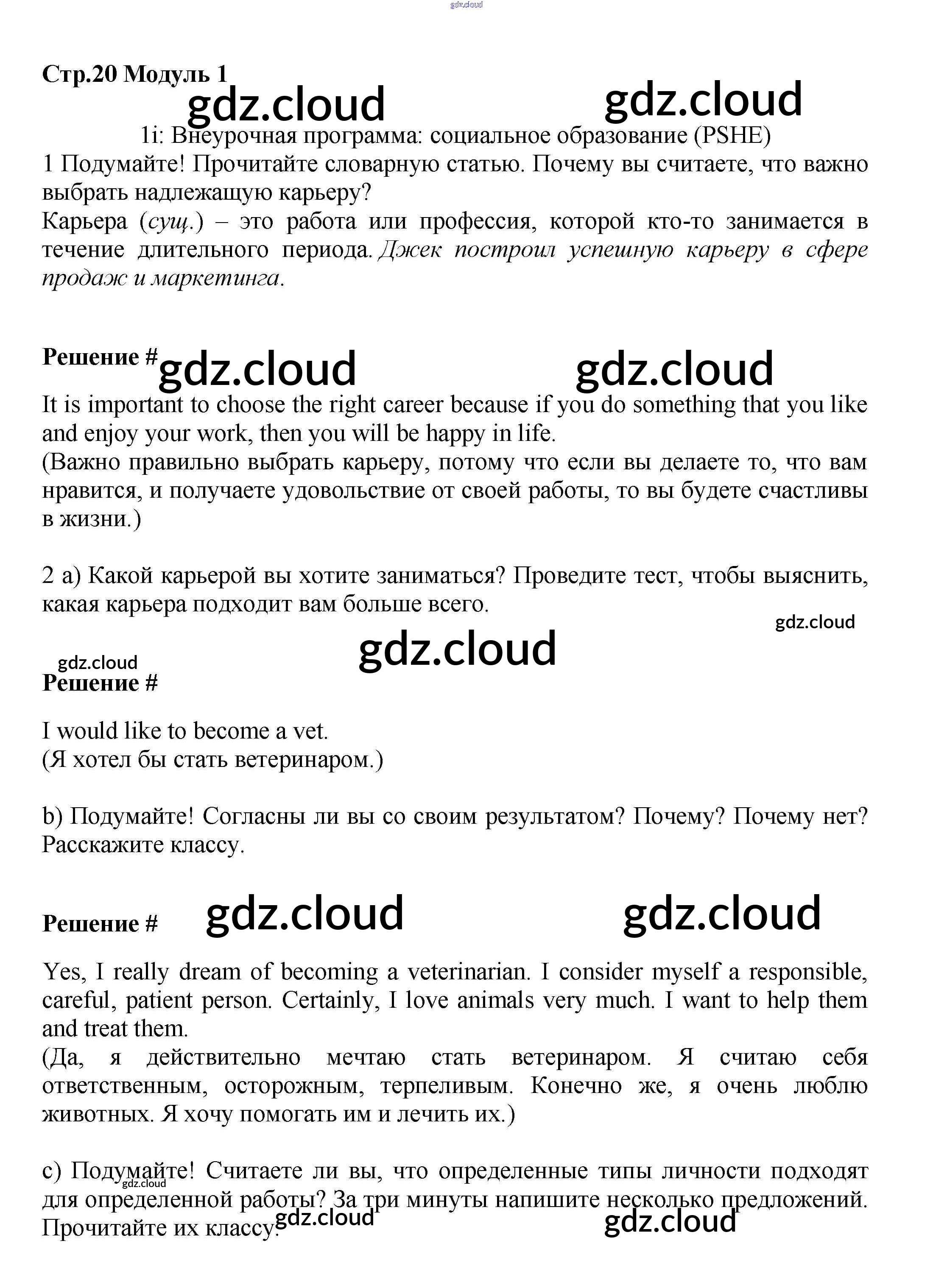 Ответ на задание стр.20 Учебник Английский язык за 7 (седьмой) класс Баранова, Дули, Копылова Starlight Углубленный уровень 2017