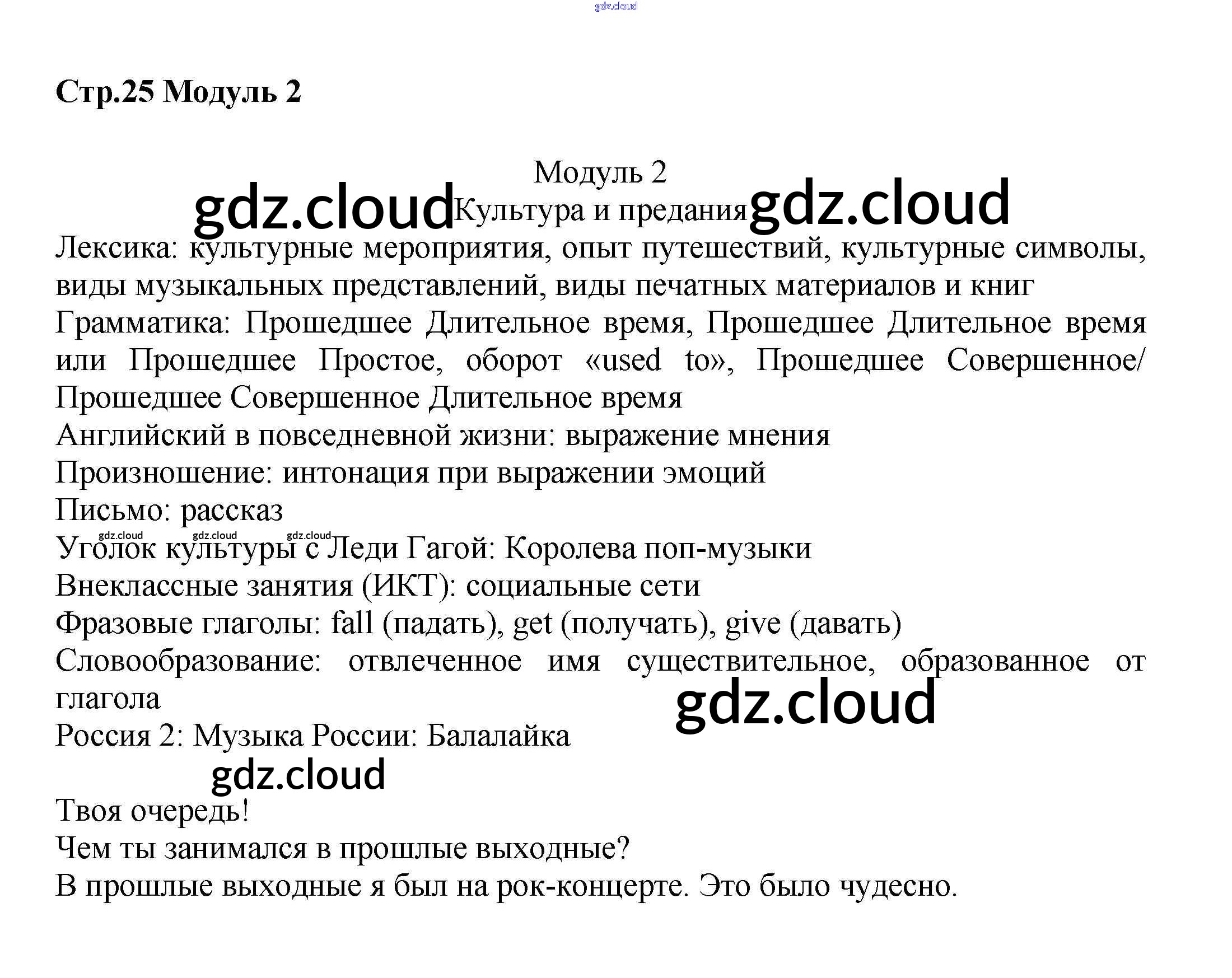 Ответ на задание стр.25 Учебник Английский язык за 7 (седьмой) класс Баранова, Дули, Копылова Starlight Углубленный уровень 2017