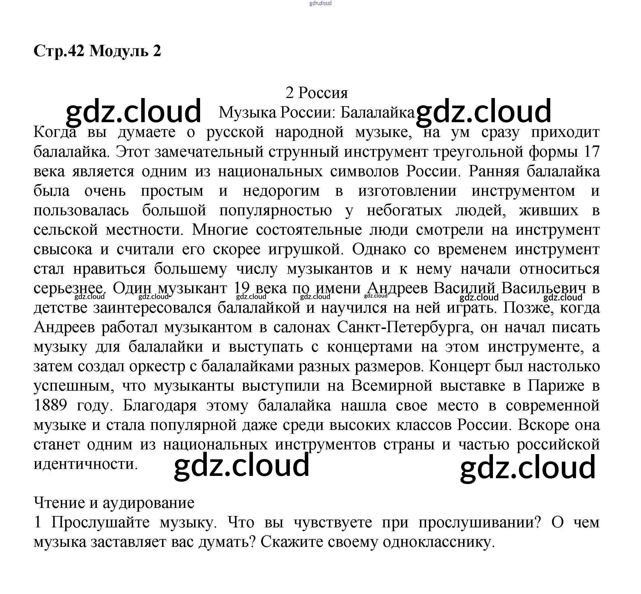 Ответ на задание стр.42 Учебник Английский язык за 7 (седьмой) класс Баранова, Дули, Копылова Starlight Углубленный уровень 2017