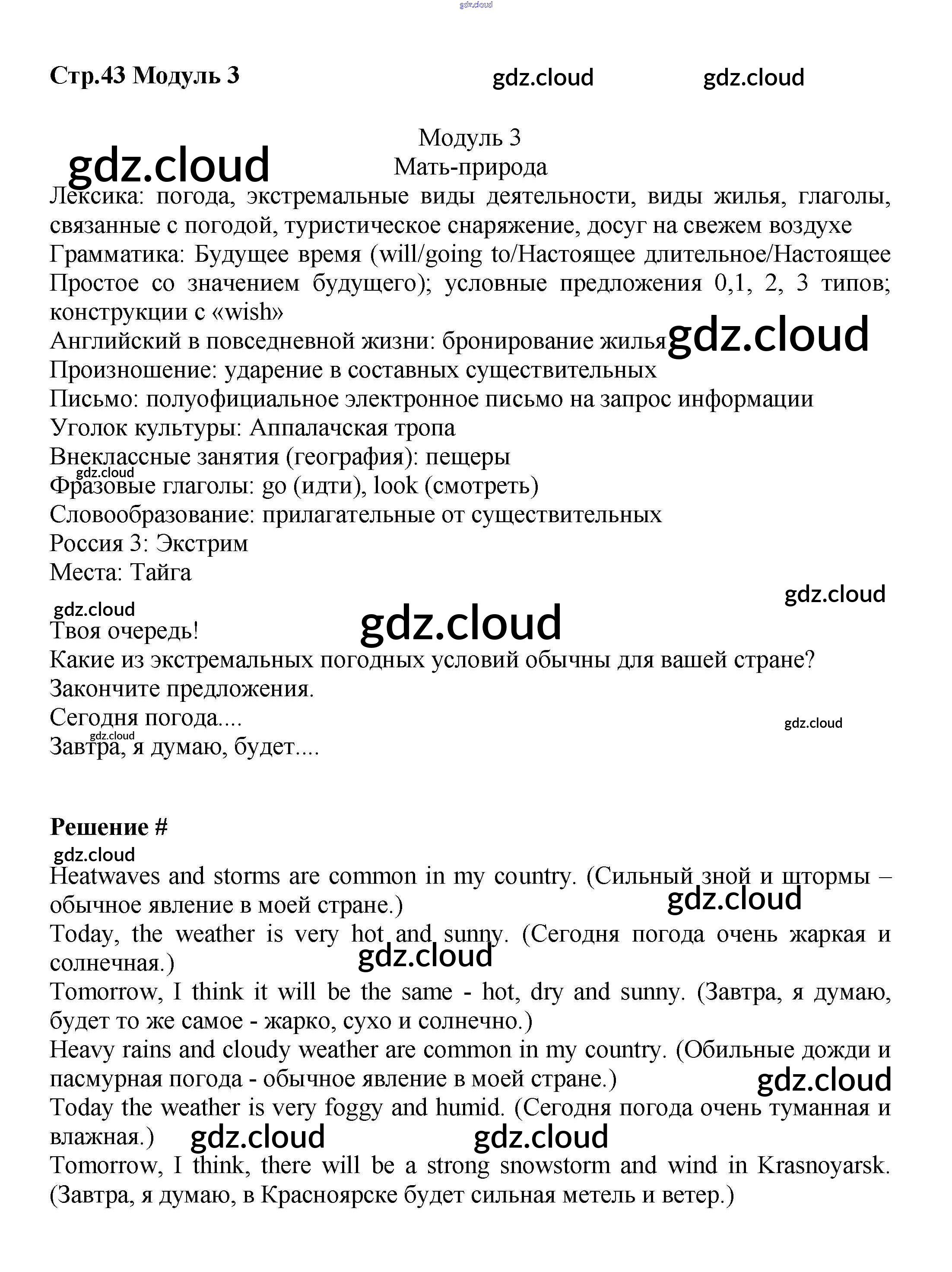 Ответ на задание стр.43 Учебник Английский язык  за 7 (седьмой) класс Баранова, Дули, Копылова Starlight Углубленный уровень 2017