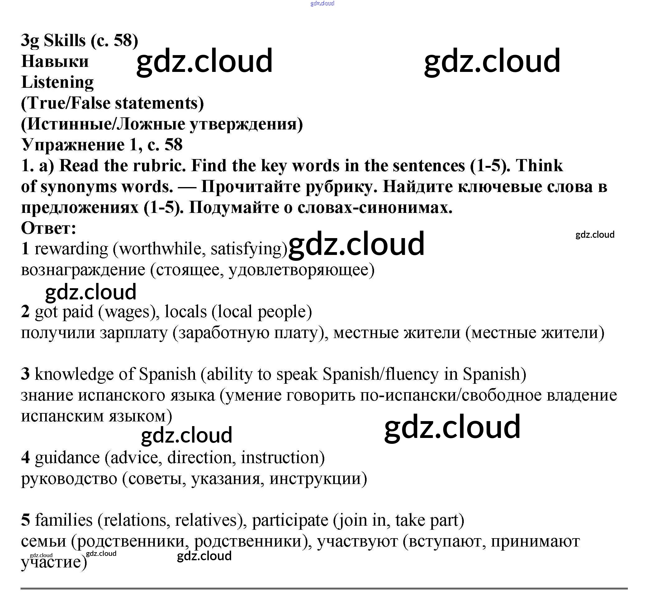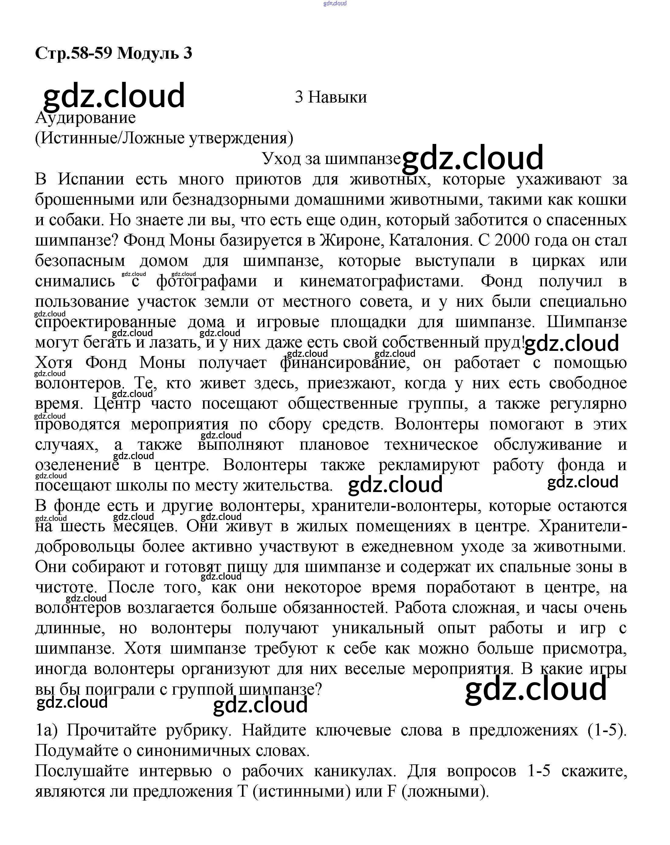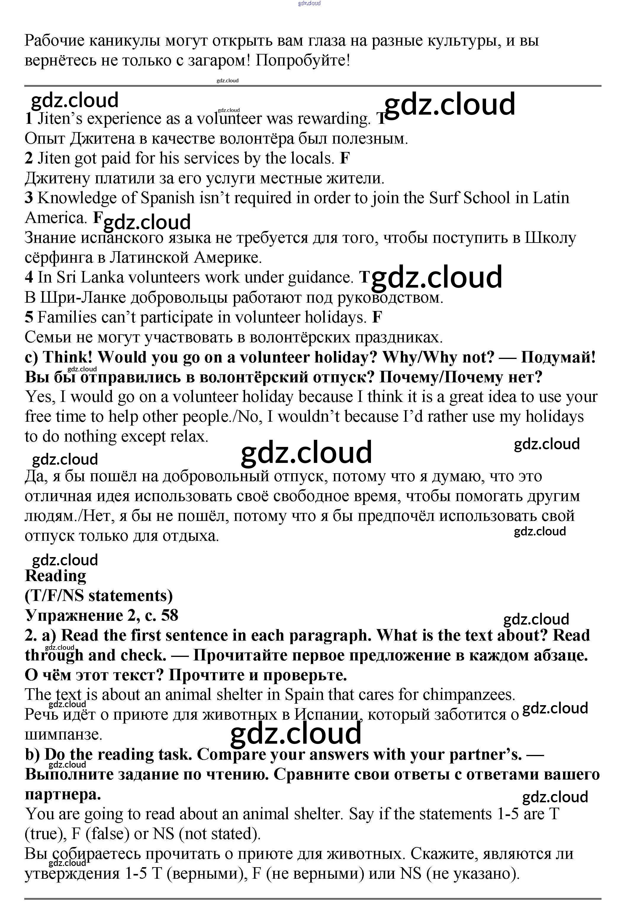 Ответ на задание стр.58-59 Учебник Английский язык за 7 (седьмой) класс Баранова, Дули, Копылова Starlight Углубленный уровень 2017