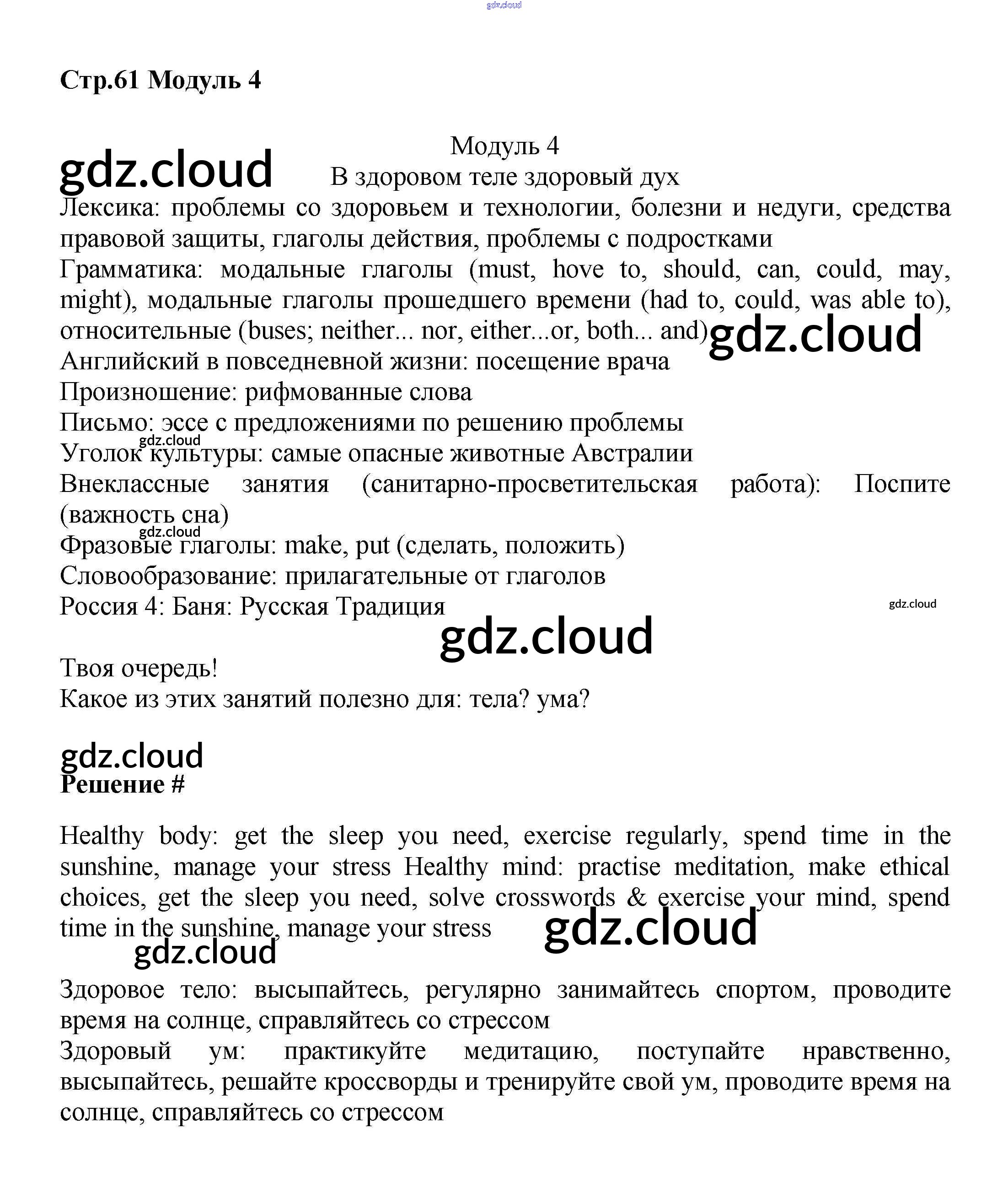 Ответ на задание стр.61 Учебник Английский язык  за 7 (седьмой) класс Баранова, Дули, Копылова Starlight Углубленный уровень 2017