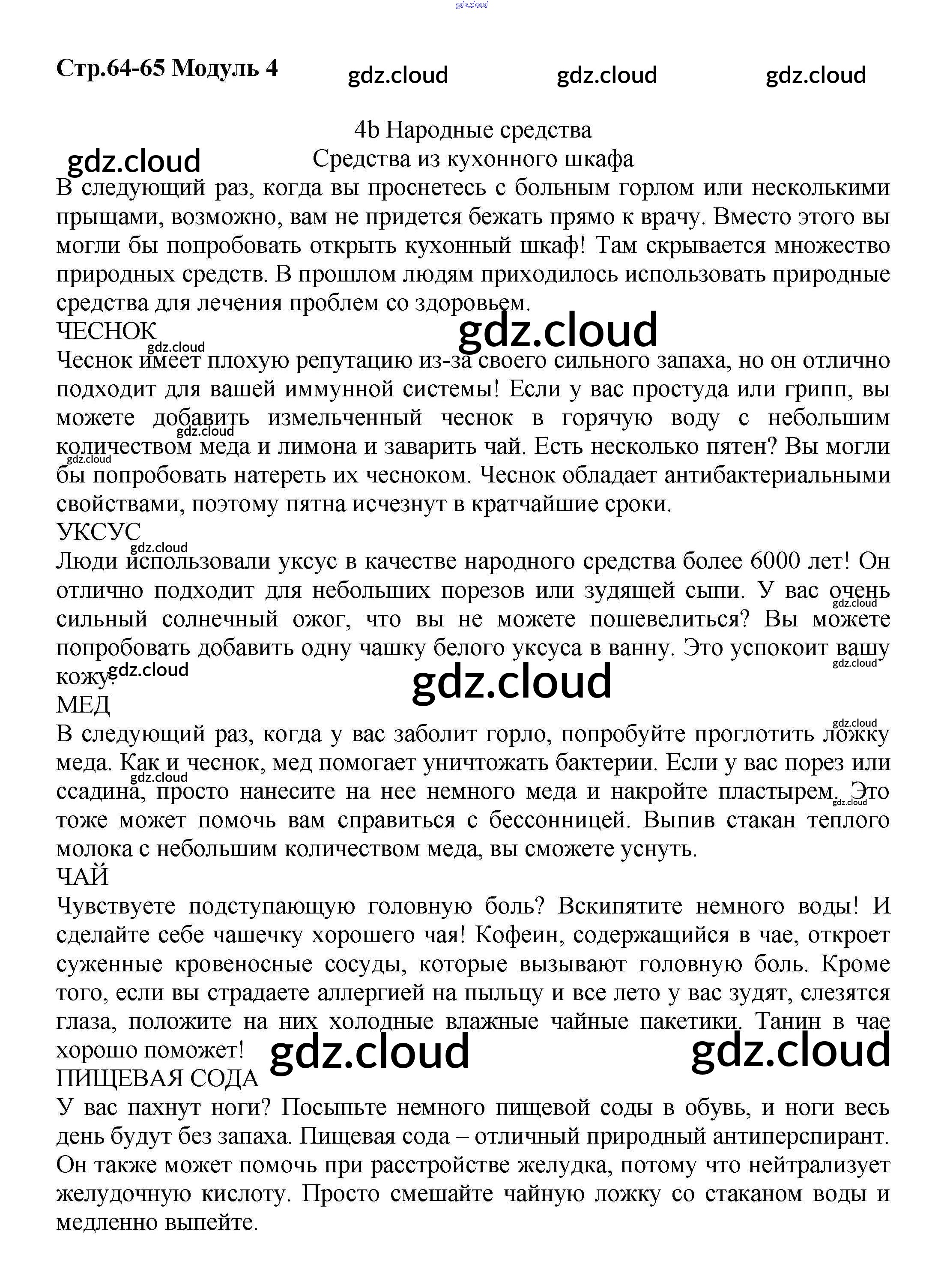 Ответ на задание стр.64-65 Учебник Английский язык  за 7 (седьмой) класс Баранова, Дули, Копылова Starlight Углубленный уровень 2017