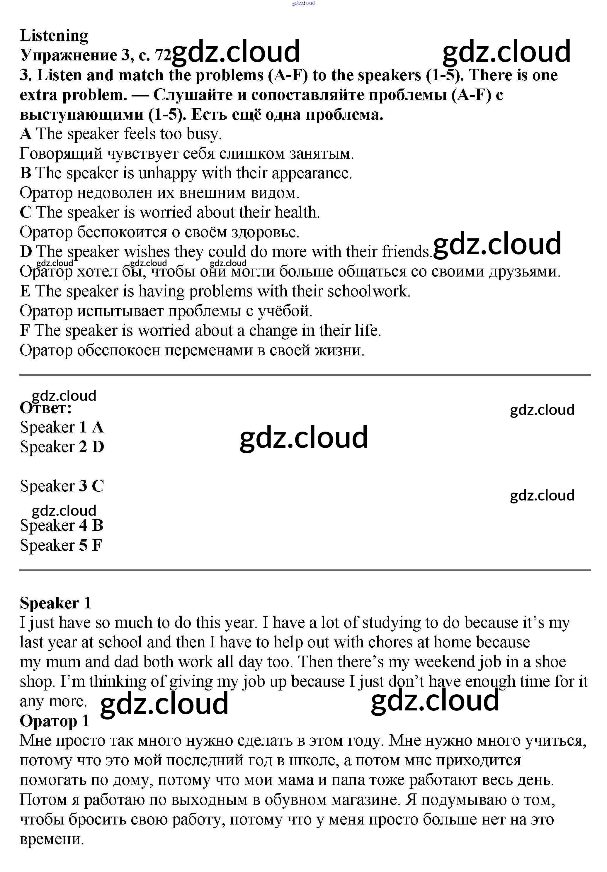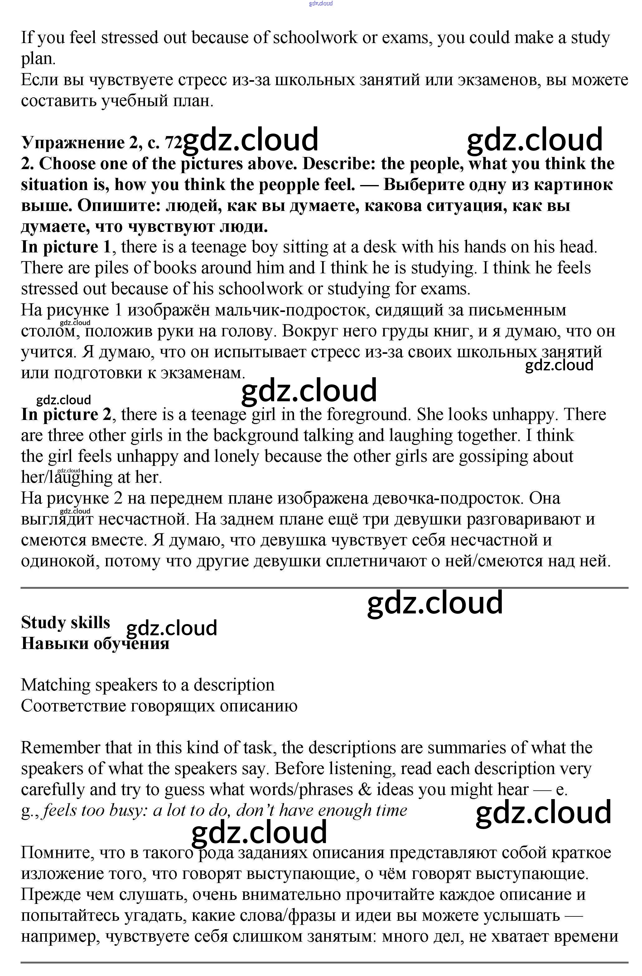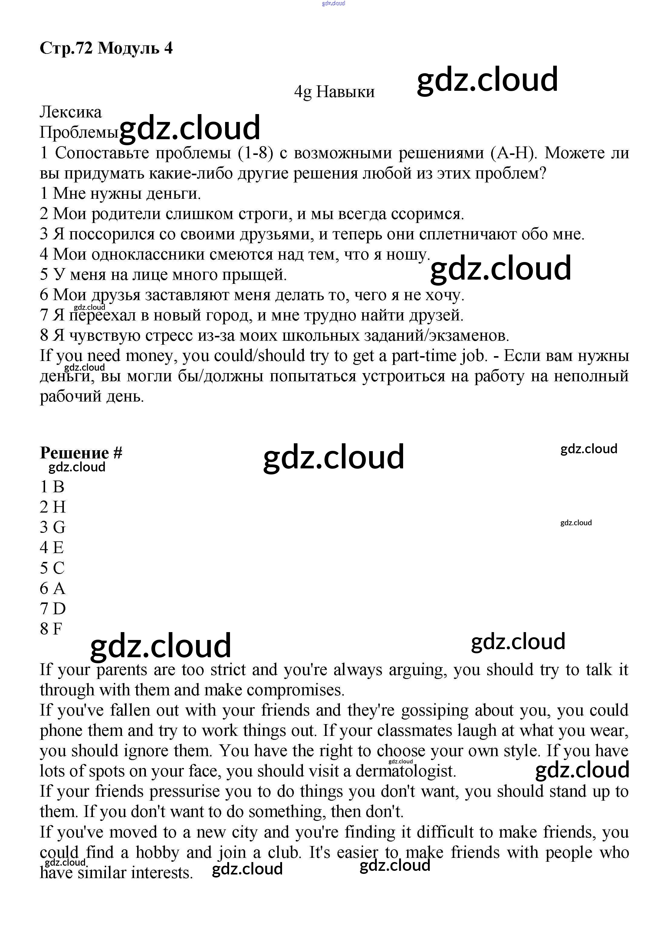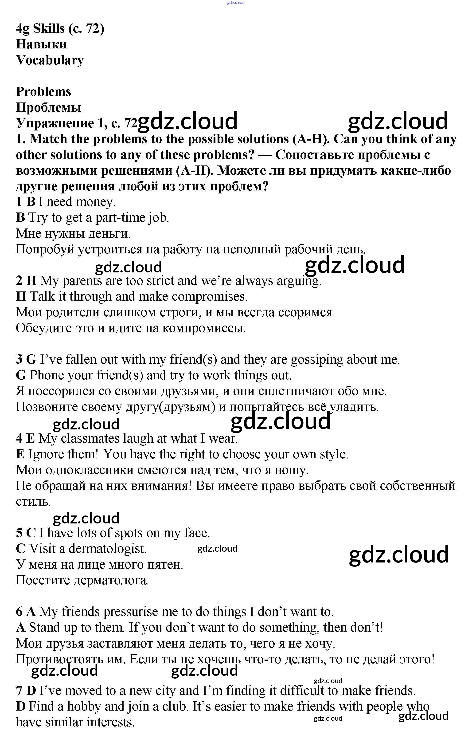 Ответ на задание стр.72 Учебник Английский язык  за 7 (седьмой) класс Баранова, Дули, Копылова Starlight Углубленный уровень 2017