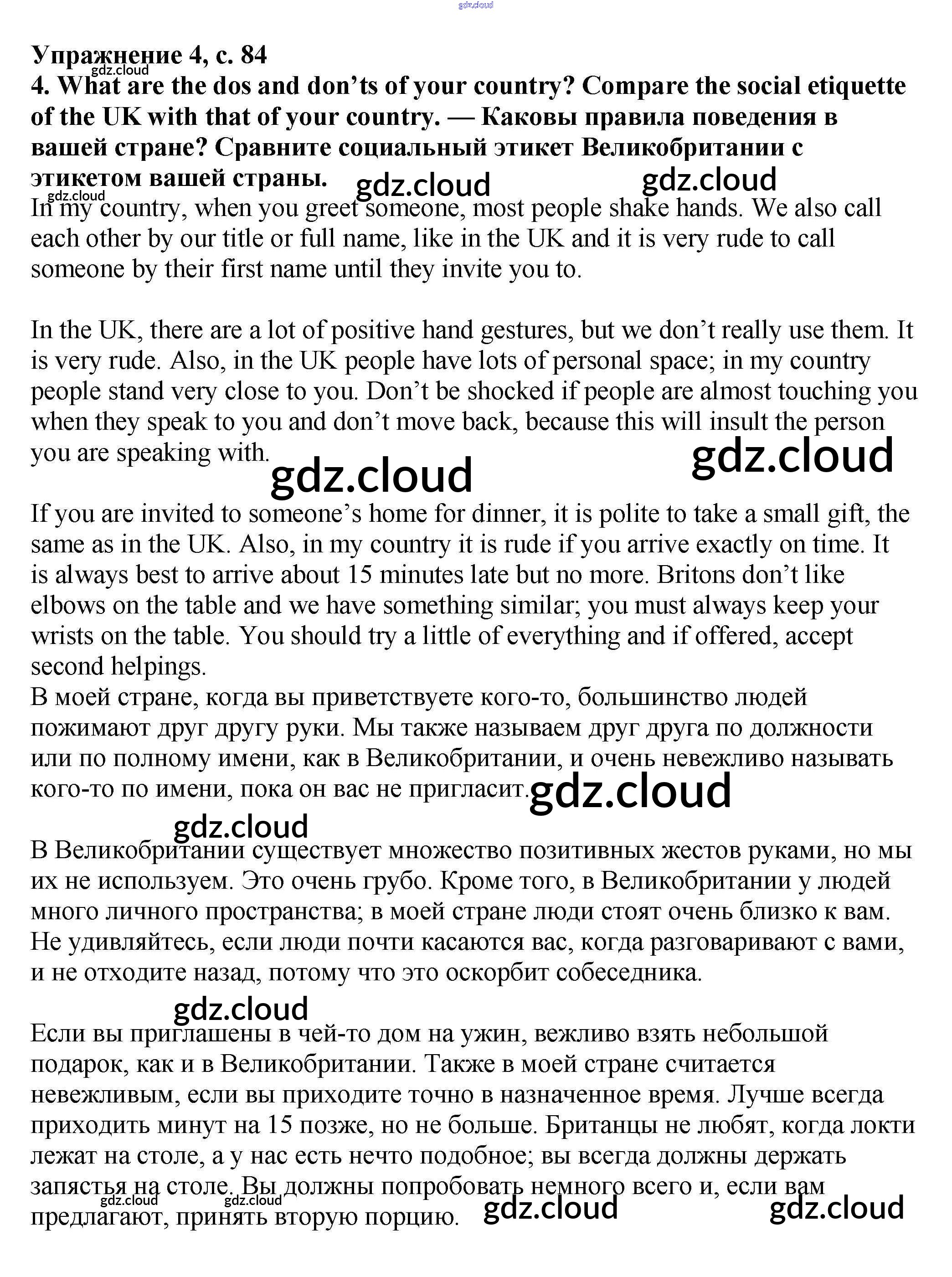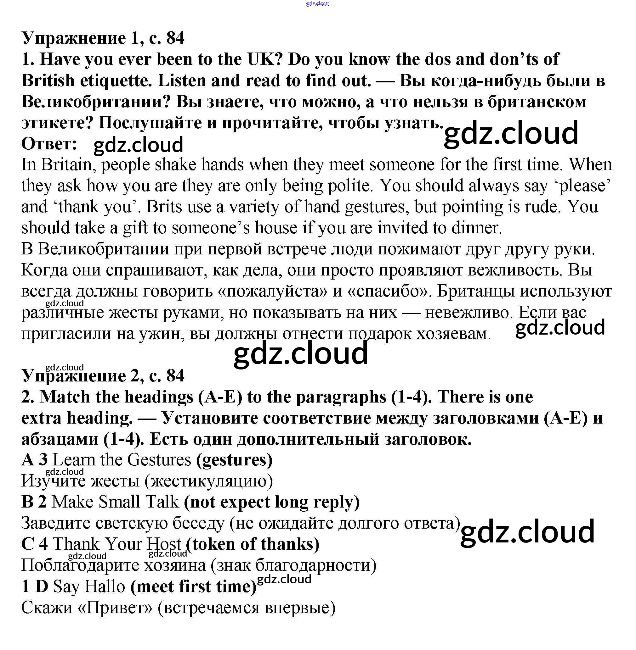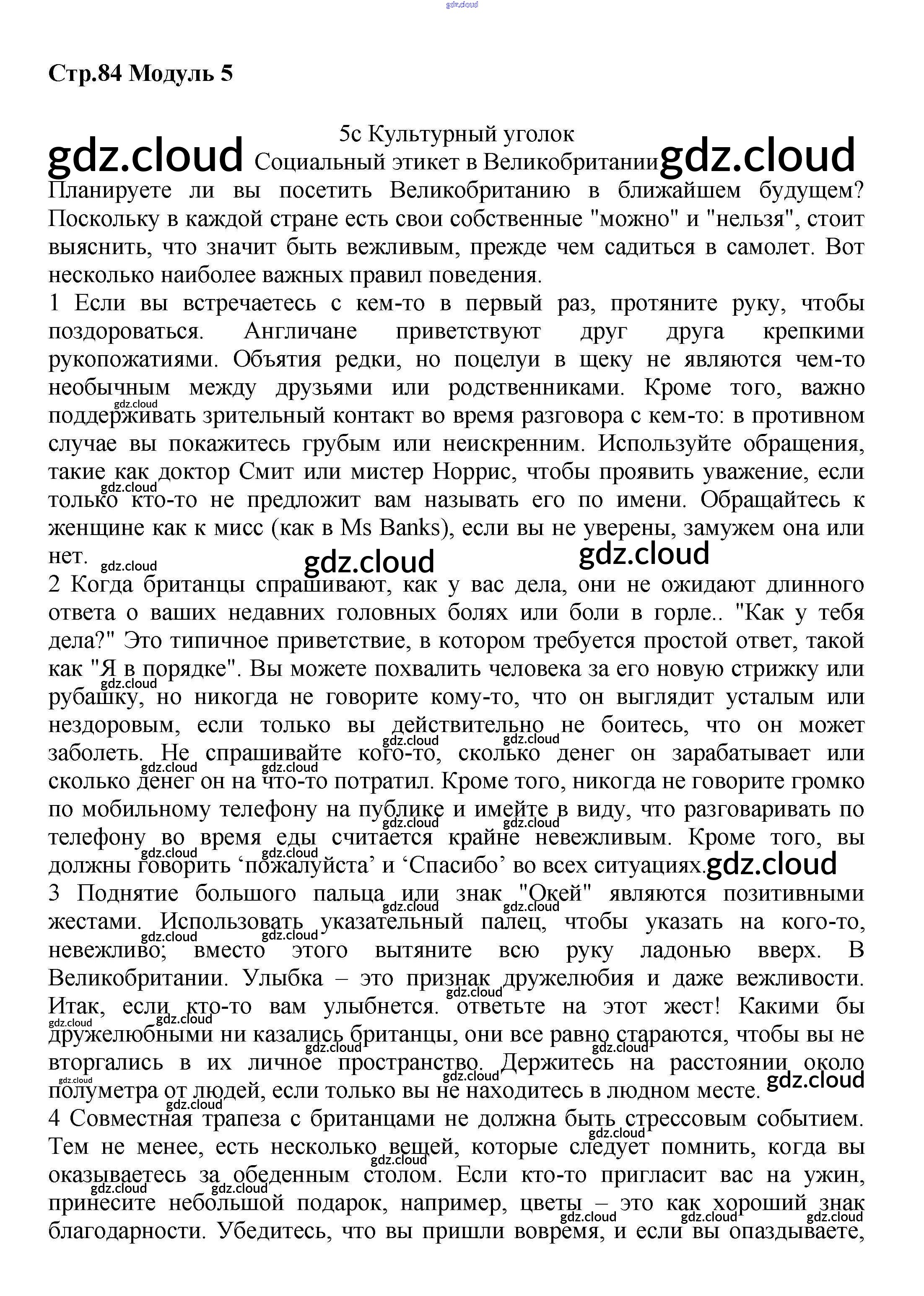 Ответ на задание стр.84 Учебник Английский язык  за 7 (седьмой) класс Баранова, Дули, Копылова Starlight Углубленный уровень 2017