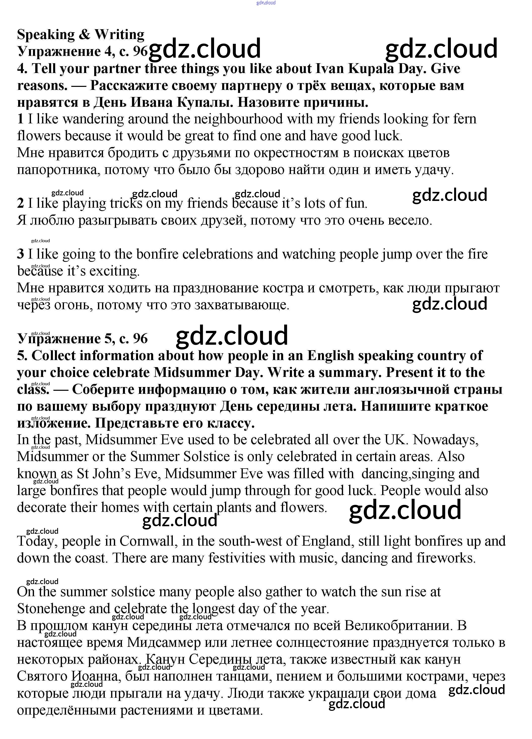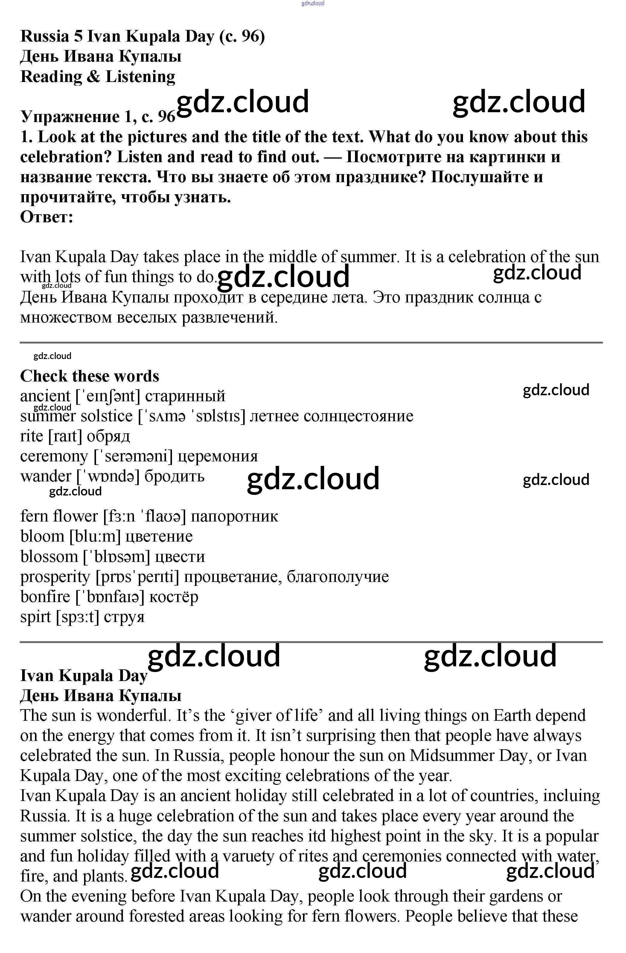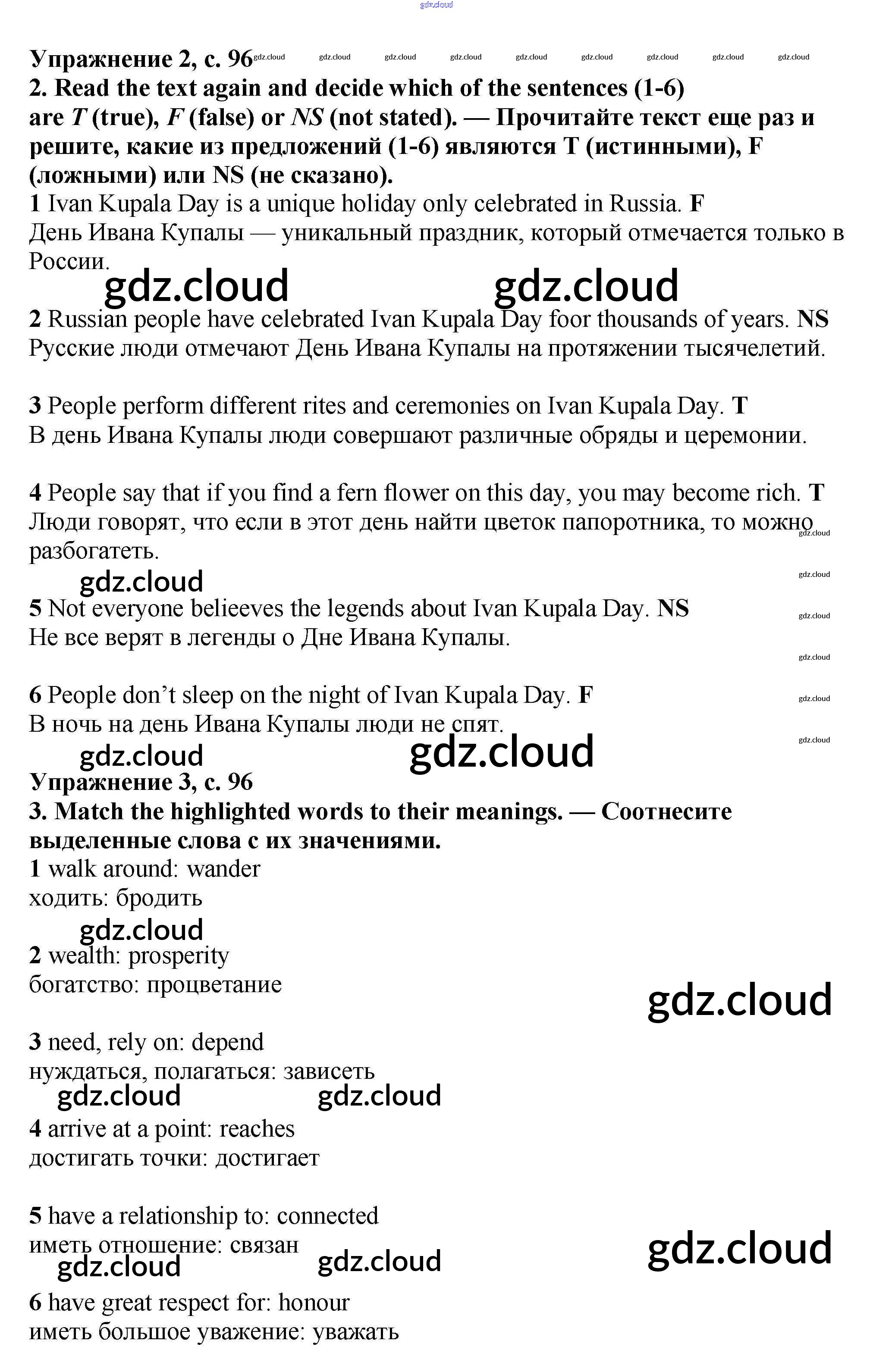 Ответ на задание стр.96 Учебник Английский язык  за 7 (седьмой) класс Баранова, Дули, Копылова Starlight Углубленный уровень 2017