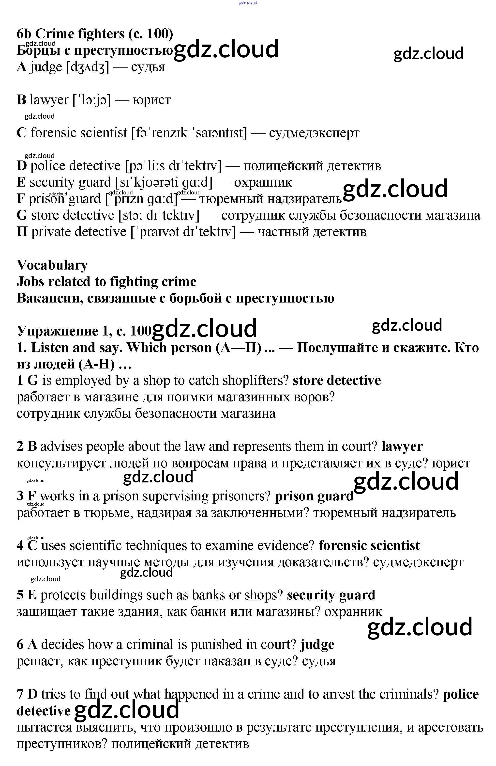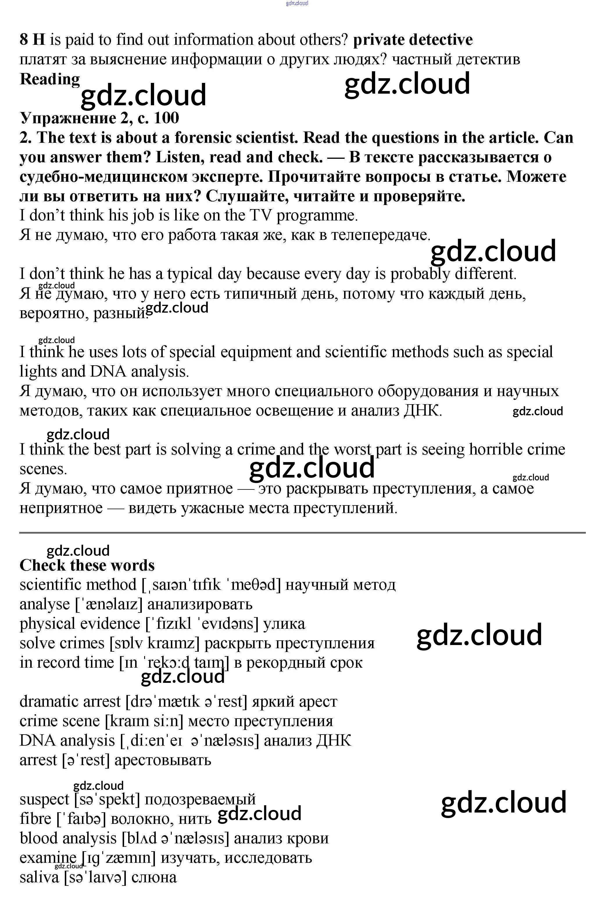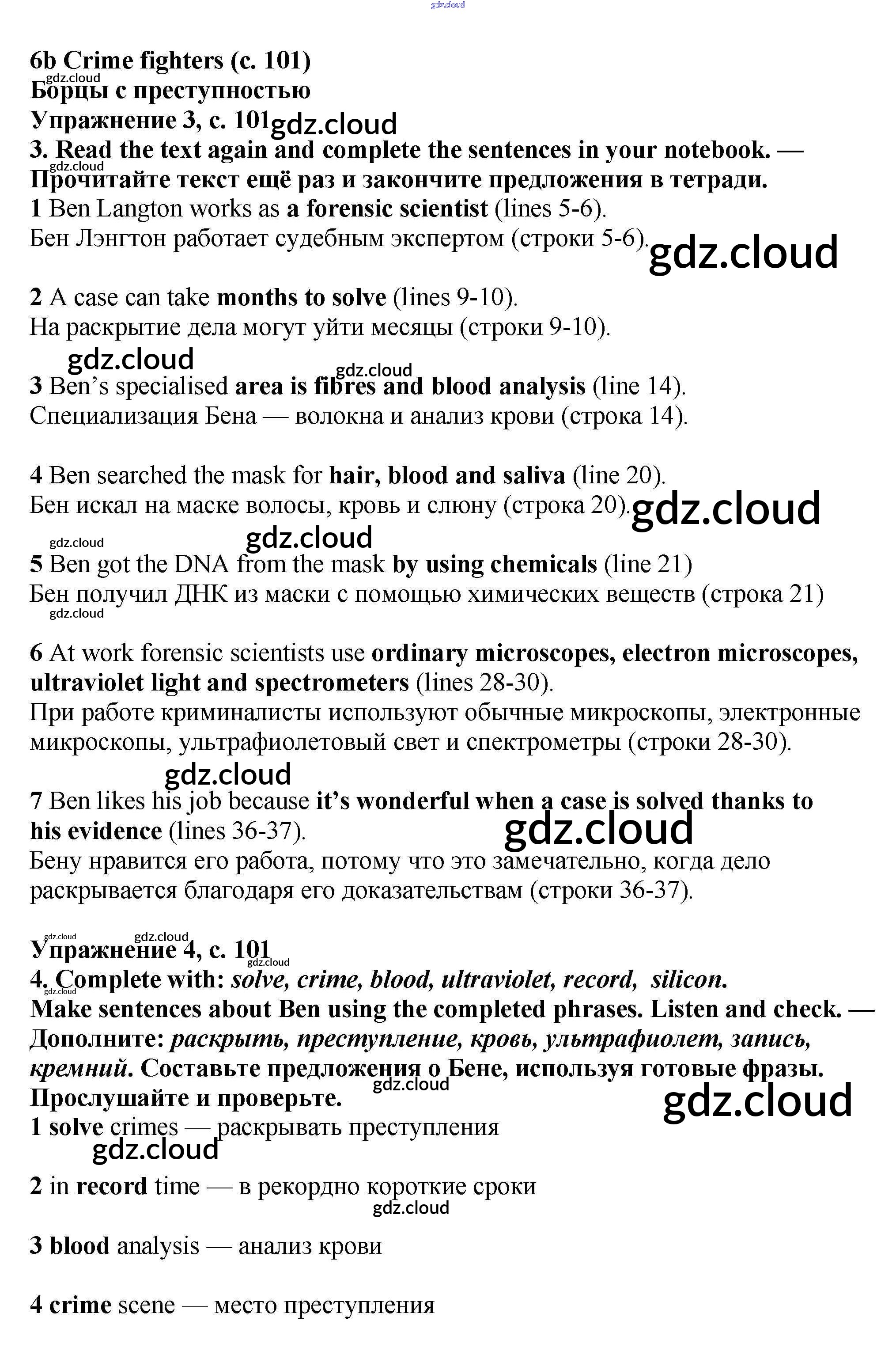Ответ на задание стр.100-101 Учебник Английский язык  за 7 (седьмой) класс Баранова, Дули, Копылова Starlight Углубленный уровень 2017