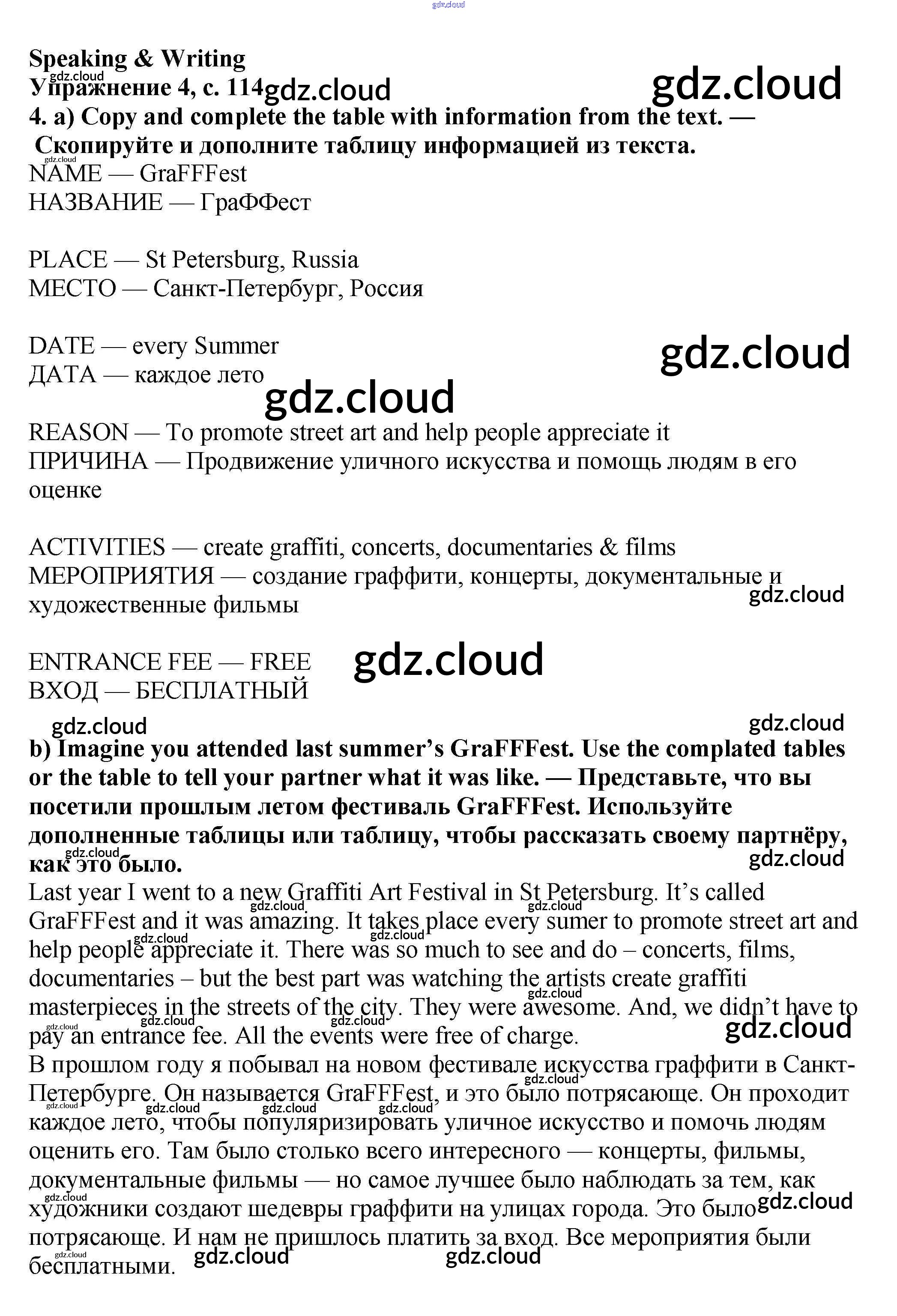 Ответ на задание стр.114 Учебник Английский язык за 7 (седьмой) класс Баранова, Дули, Копылова Starlight Углубленный уровень 2017