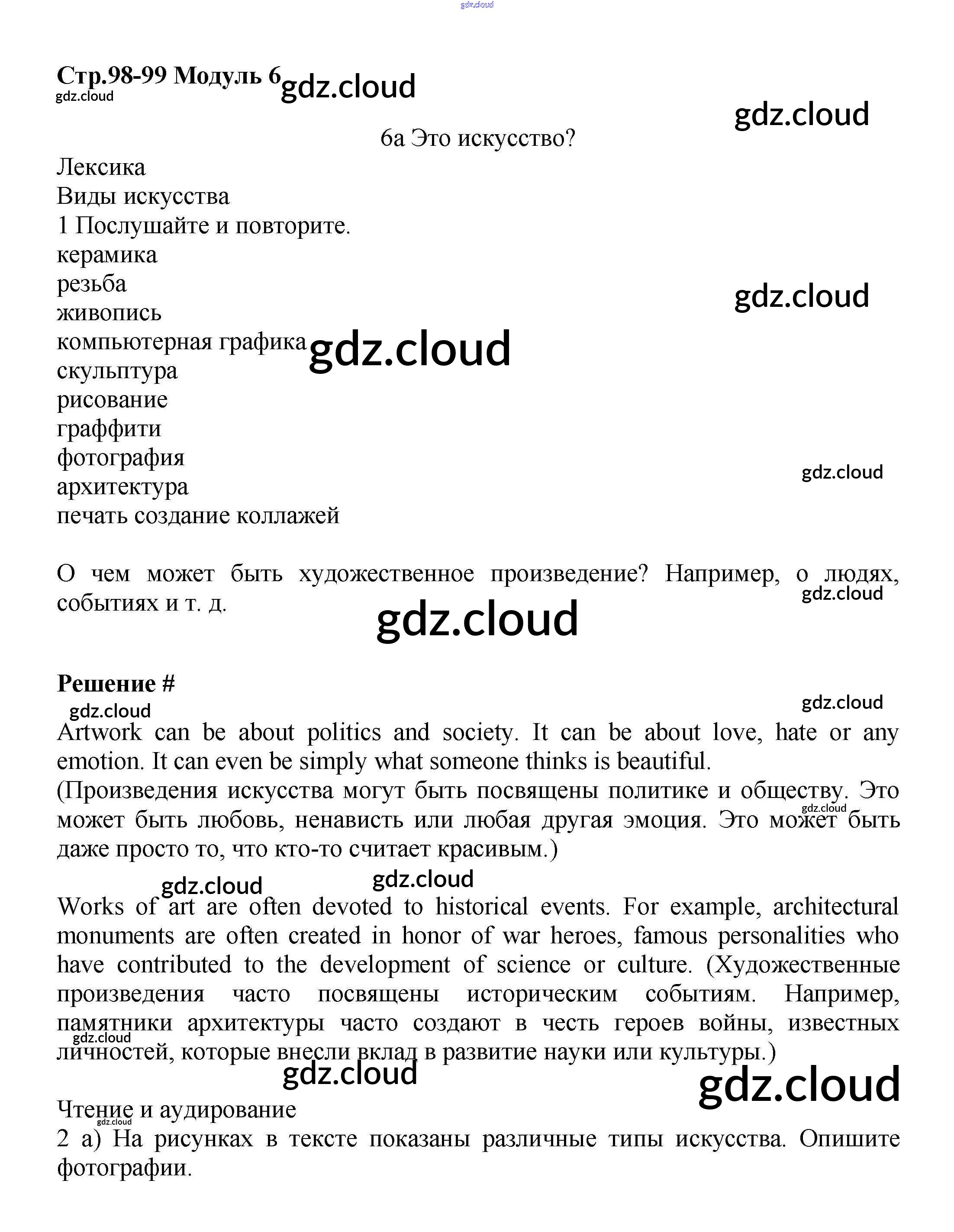 Ответ на задание стр.98-99 Учебник Английский язык  за 7 (седьмой) класс Баранова, Дули, Копылова Starlight Углубленный уровень 2017