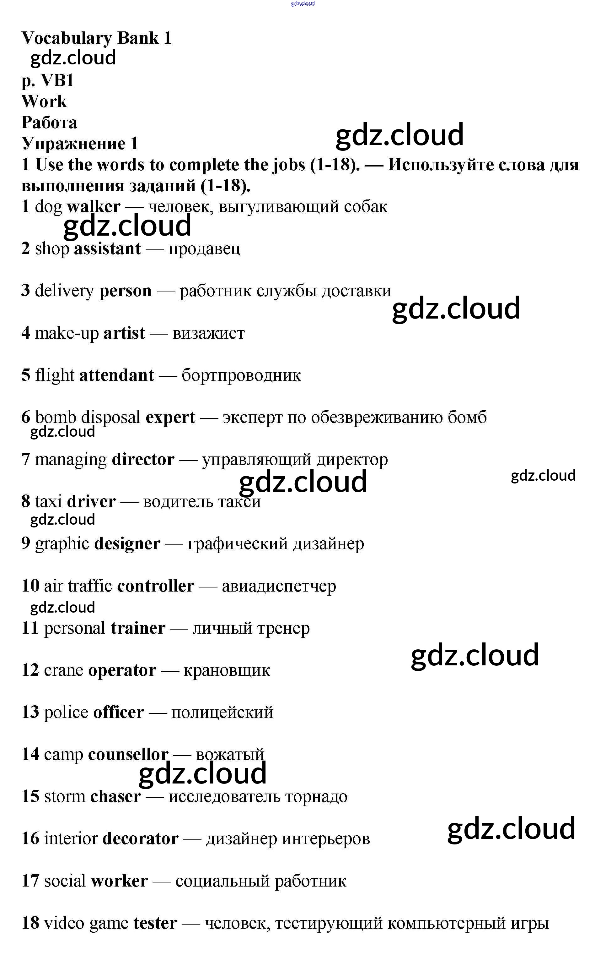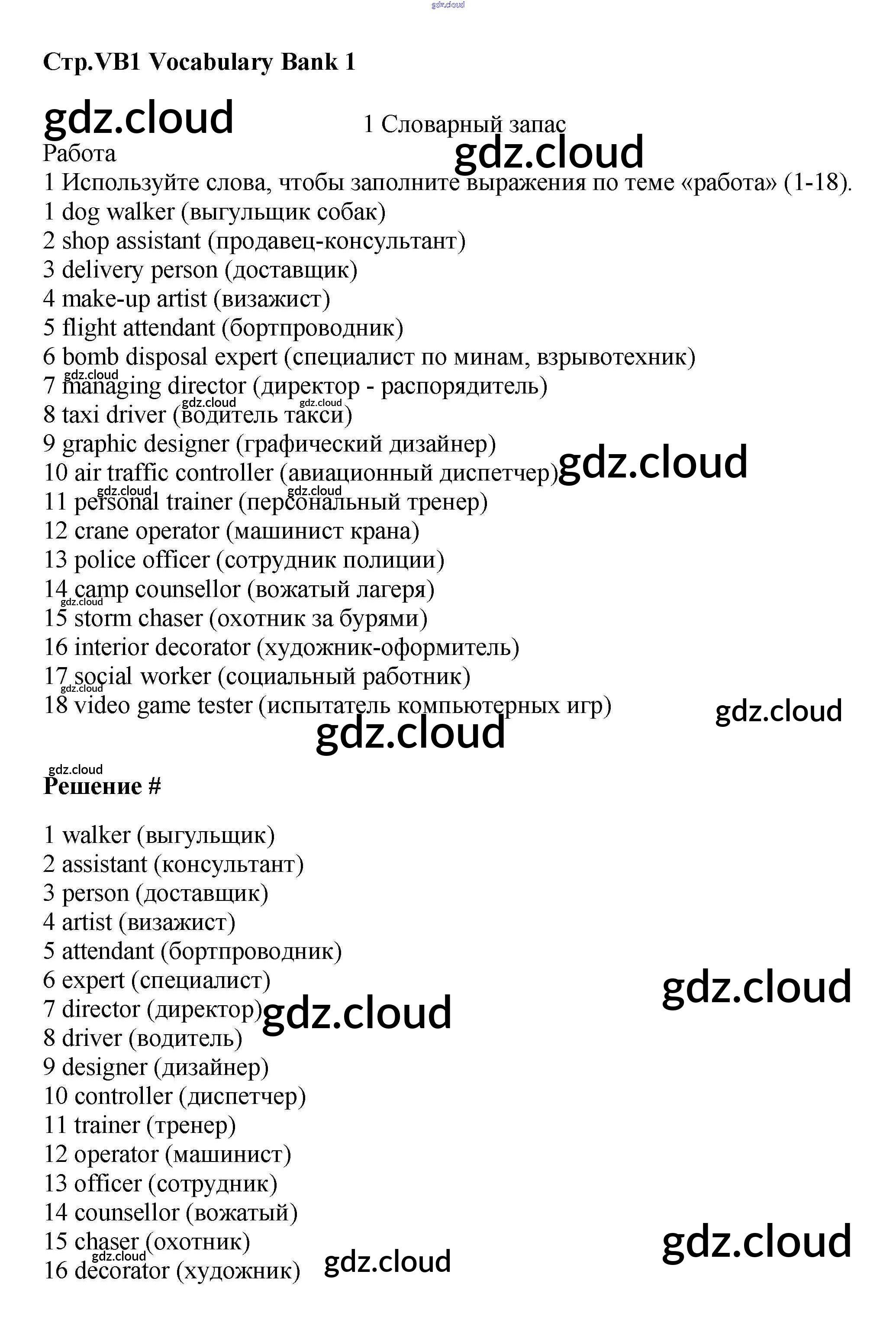 Ответ на задание VB1 Учебник Английский язык  за 7 (седьмой) класс Баранова, Дули, Копылова Starlight Углубленный уровень 2017
