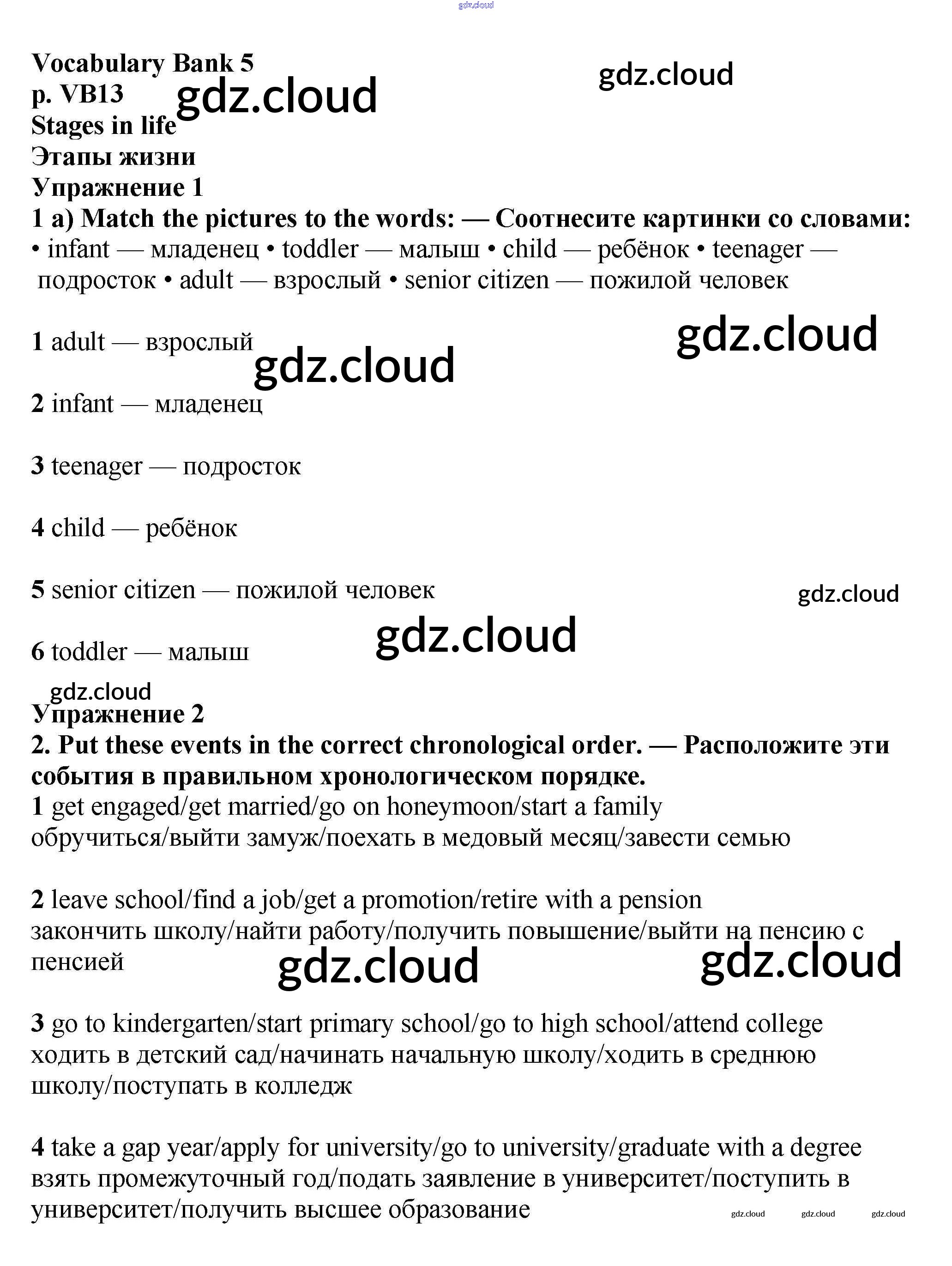 Ответы к Vocabulary Bank  по Английскому языку 7 класс Учебник Баранова Starlight Углубленный уровень  Просвещение