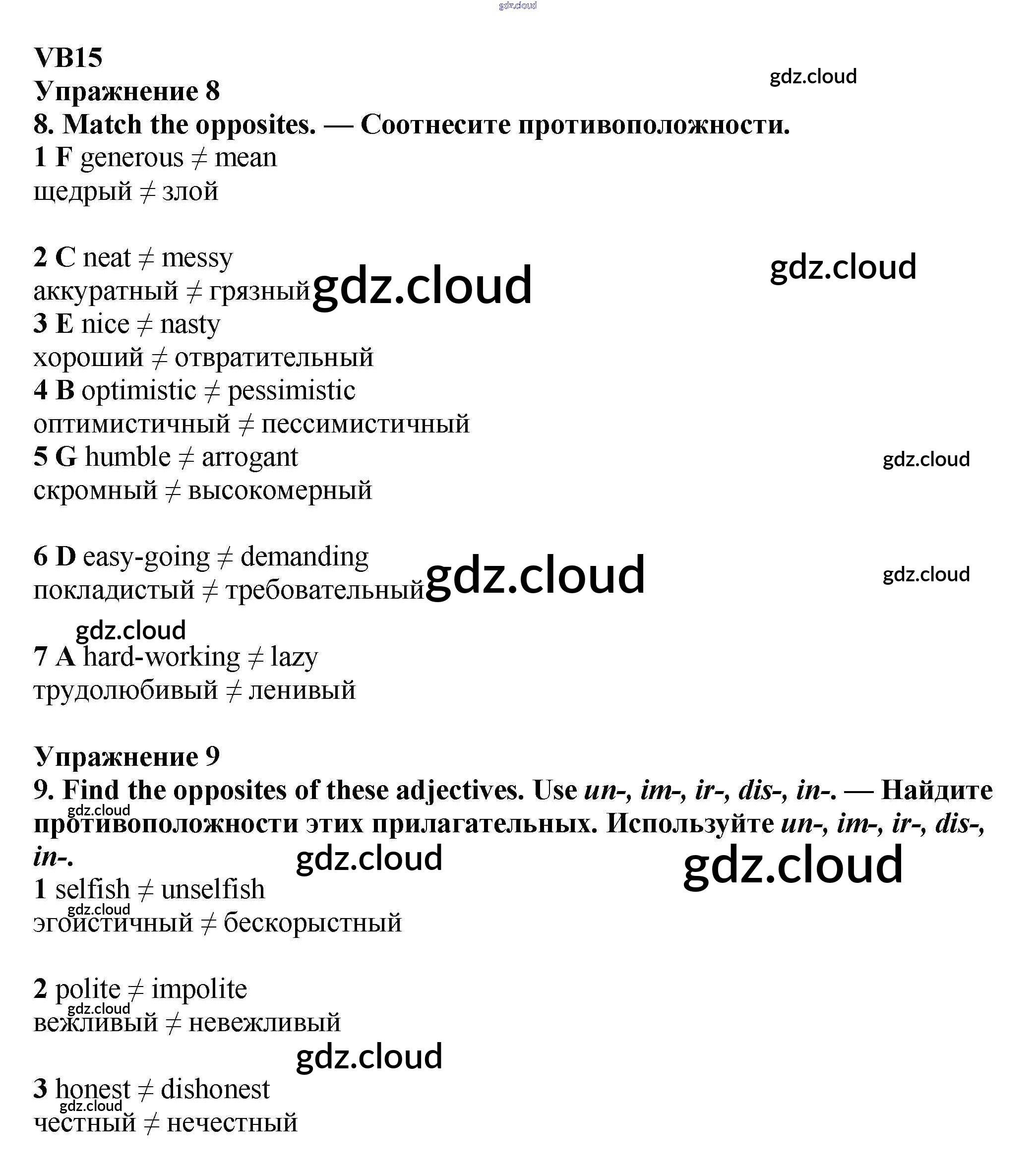 Ответ на задание VB15 Учебник Английский язык  за 7 (седьмой) класс Баранова, Дули, Копылова Starlight Углубленный уровень 2017