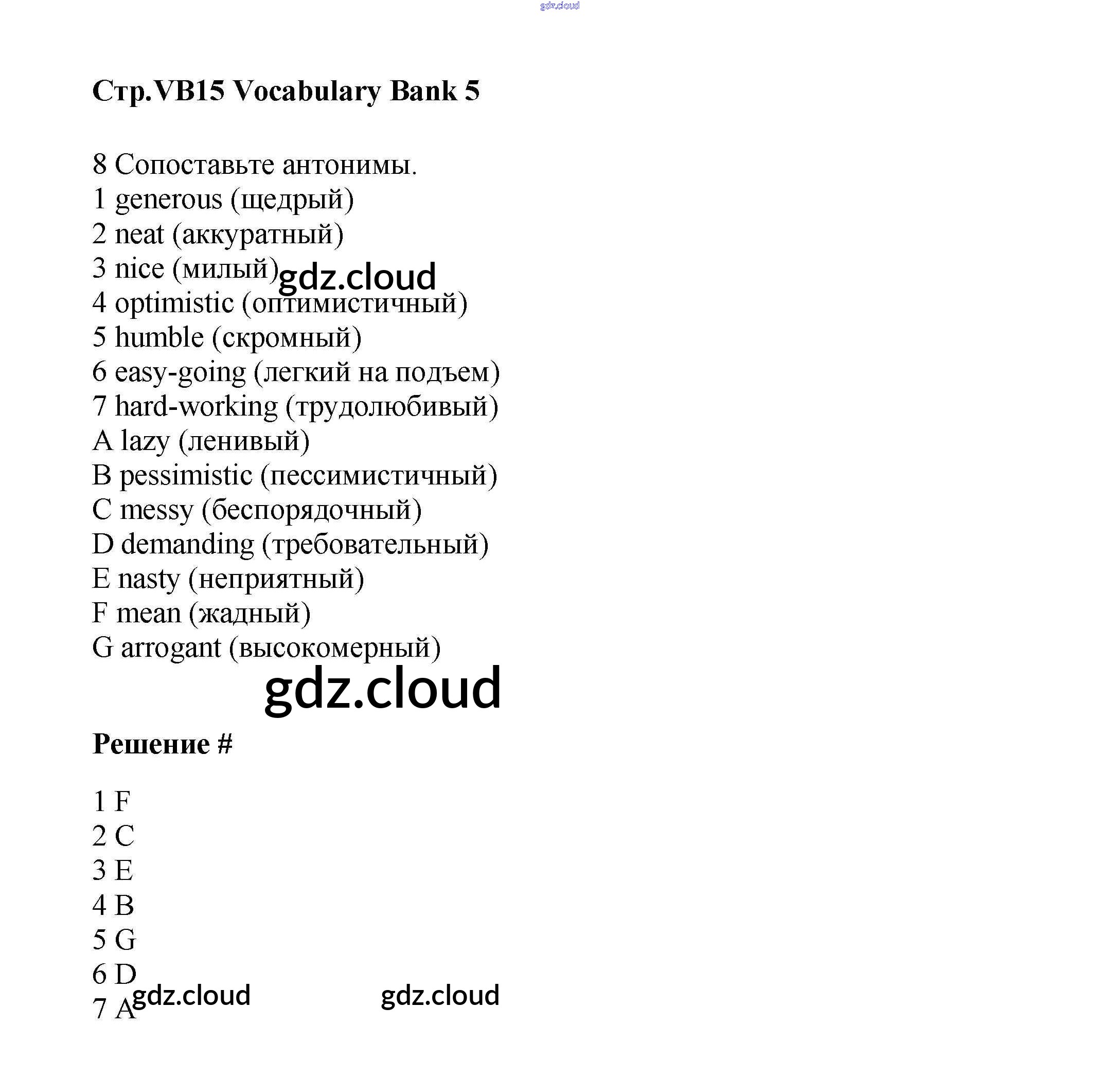 Ответы к Vocabulary Bank  по Английскому языку 7 класс Учебник Баранова Starlight Углубленный уровень  Просвещение