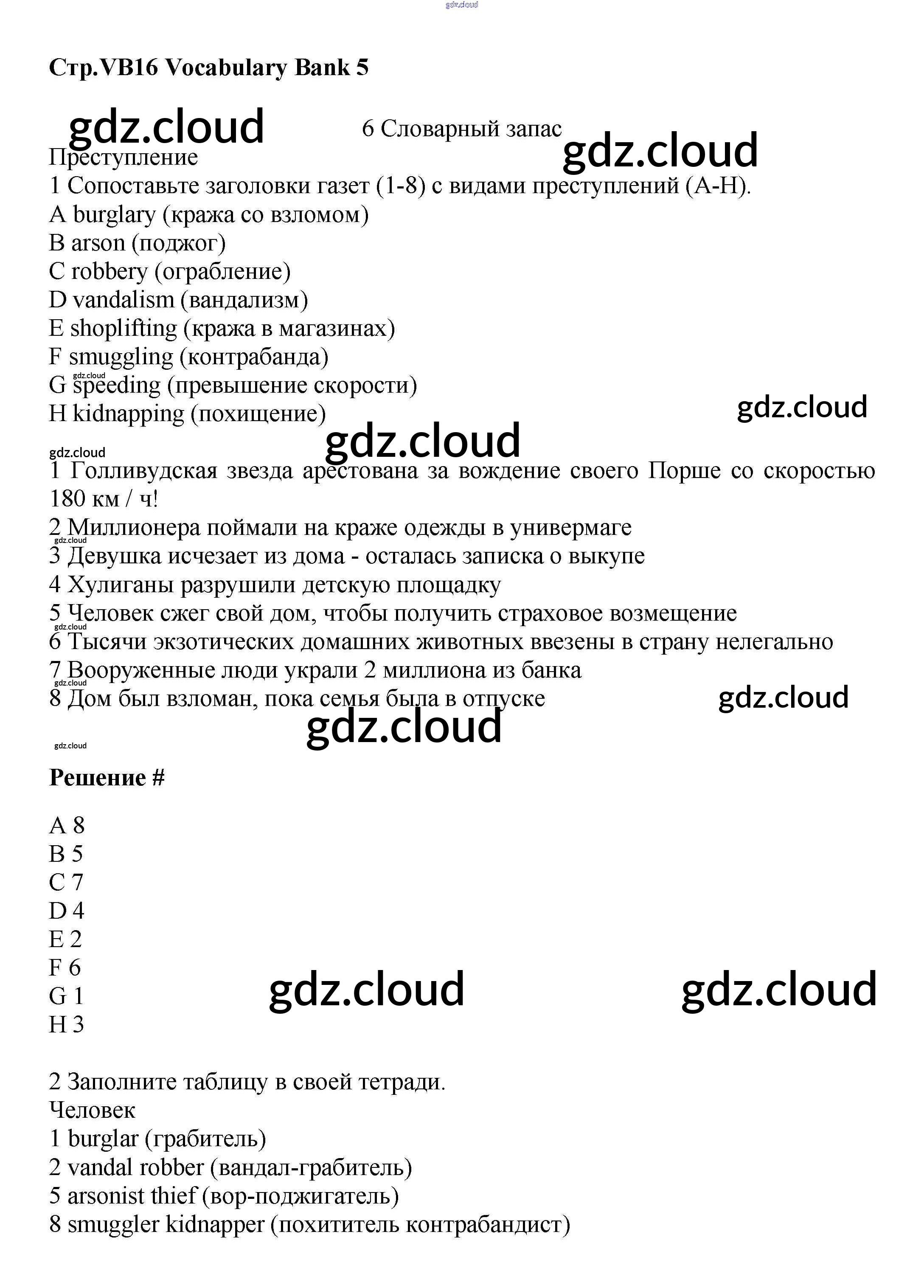 Ответ на задание VB16 Учебник Английский язык  за 7 (седьмой) класс Баранова, Дули, Копылова Starlight Углубленный уровень 2017