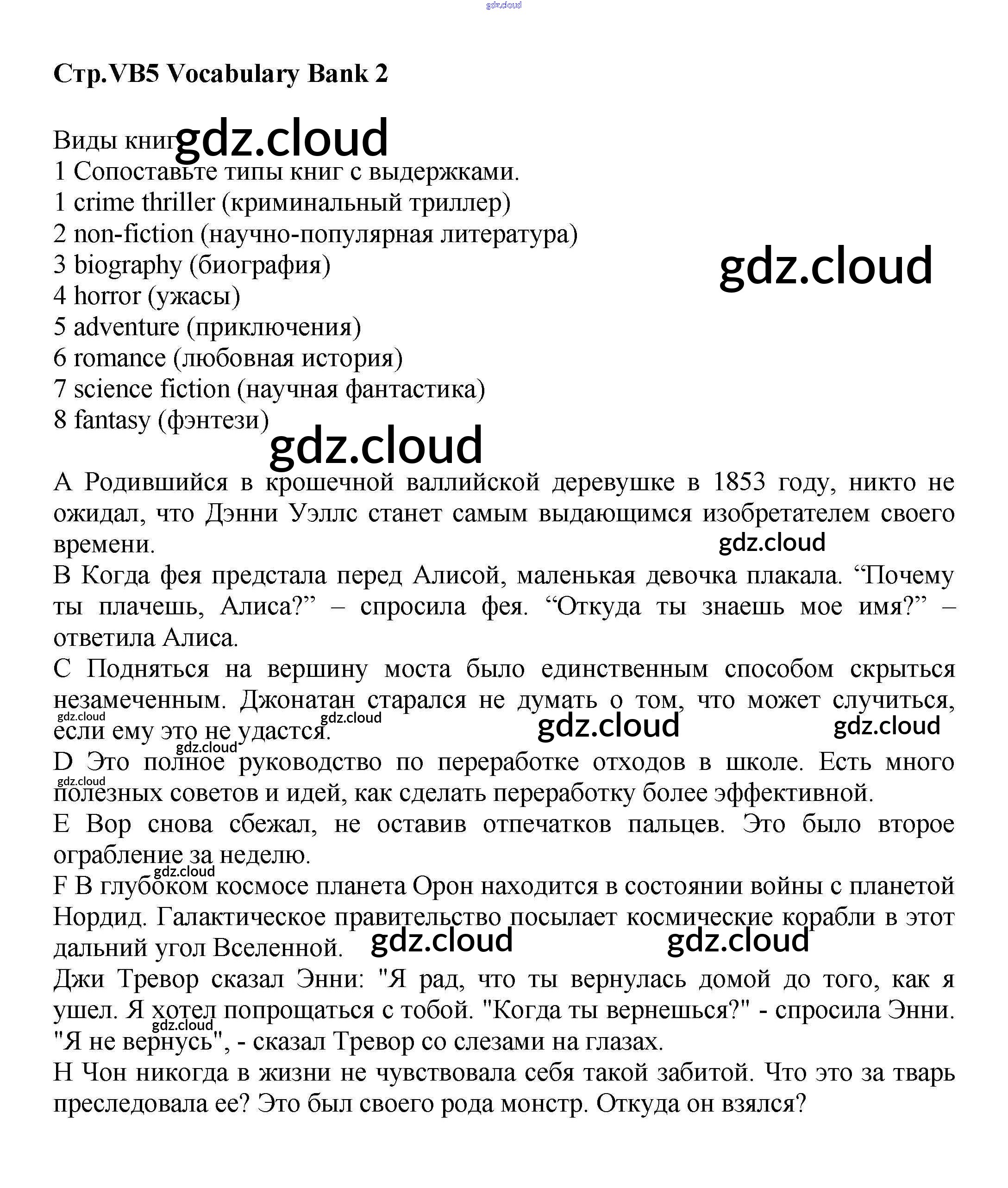 Ответ на задание VB5 Учебник Английский язык  за 7 (седьмой) класс Баранова, Дули, Копылова Starlight Углубленный уровень 2017