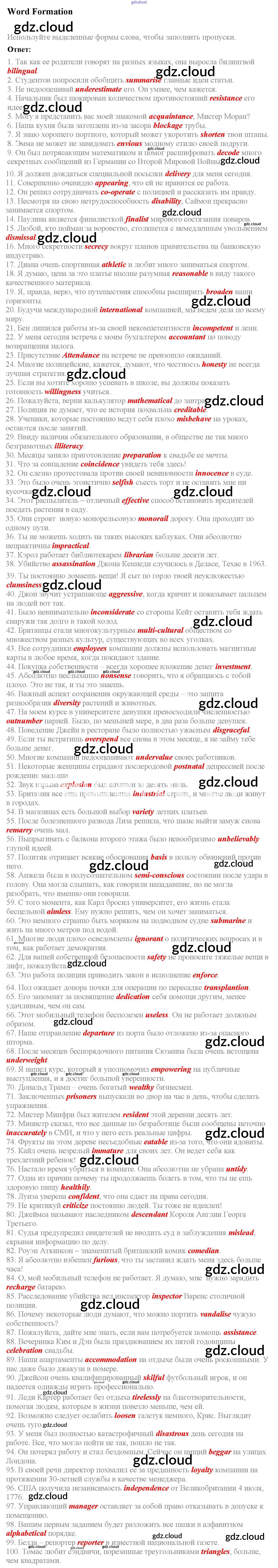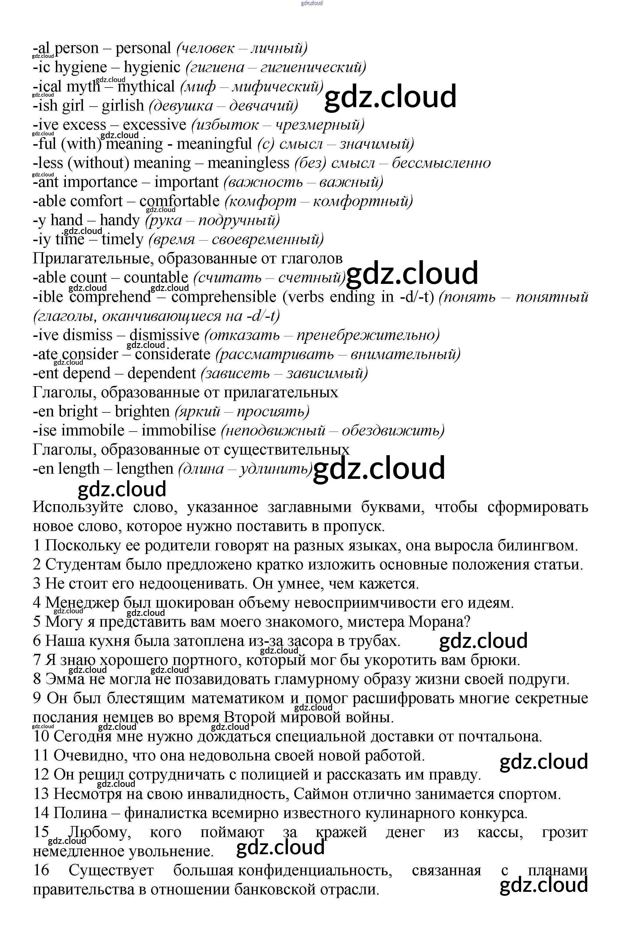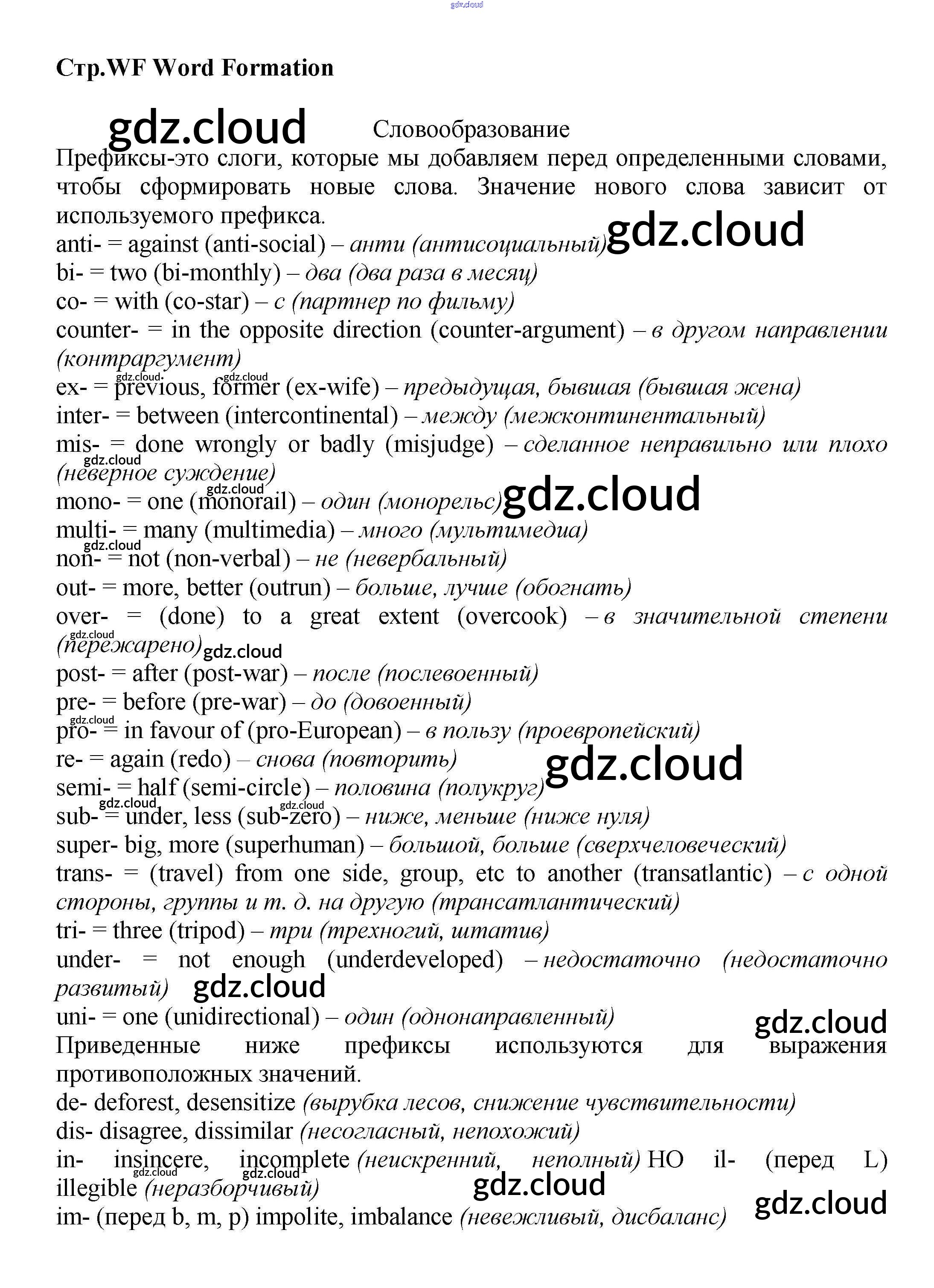Ответы к Word Formation  по Английскому языку 7 класс Учебник Баранова Starlight Углубленный уровень  Просвещение