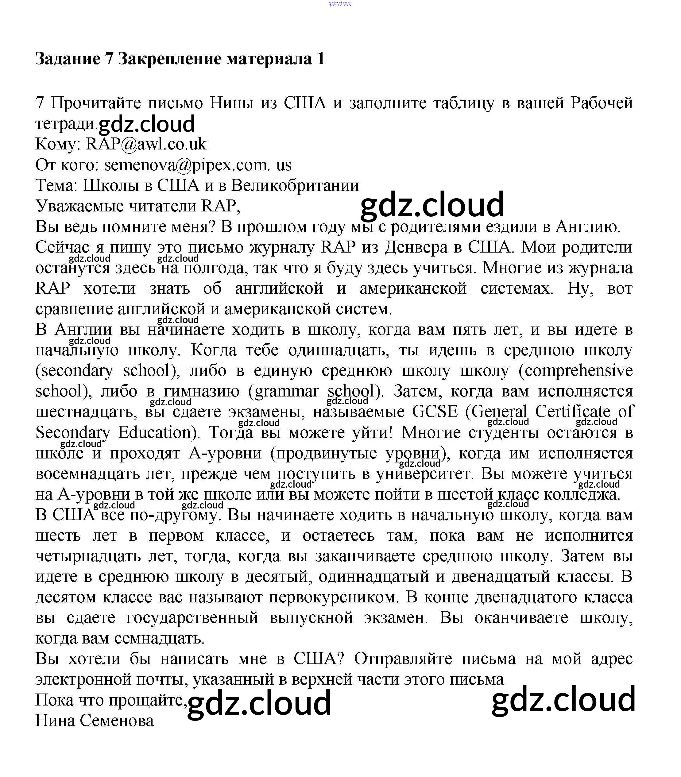 Ответ на задание 7 Учебник Английский язык  за 7 (седьмой) класс Вербицкая, Гаярделли, Редли, Миндрул, Савчук Forward  2017 Часть 1, 2