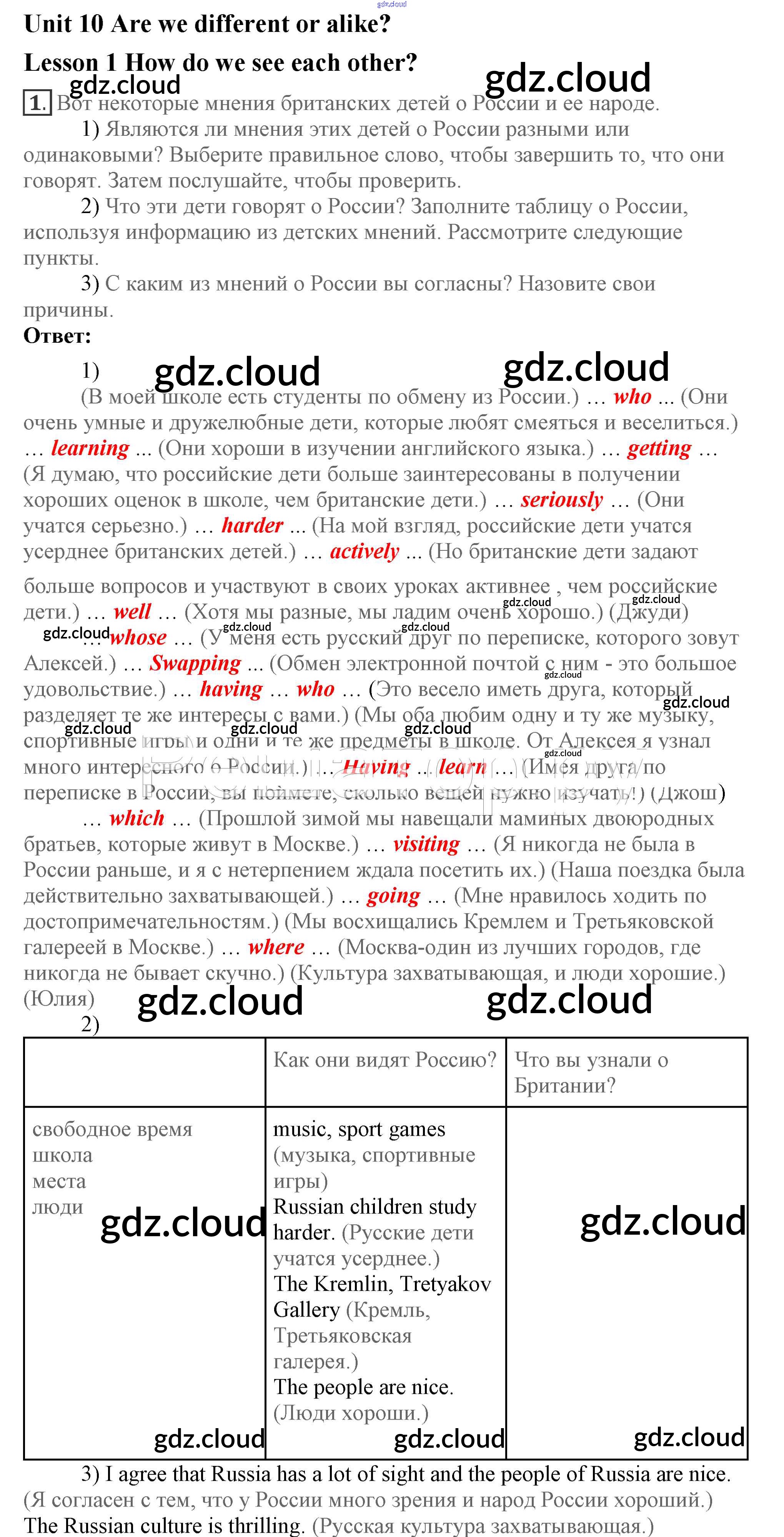 Lesson 1 Ответы к Unit 10. Are we different or alike? по Английскому языку 7 класс Учебник Кузовлев УМК   Просвещение
