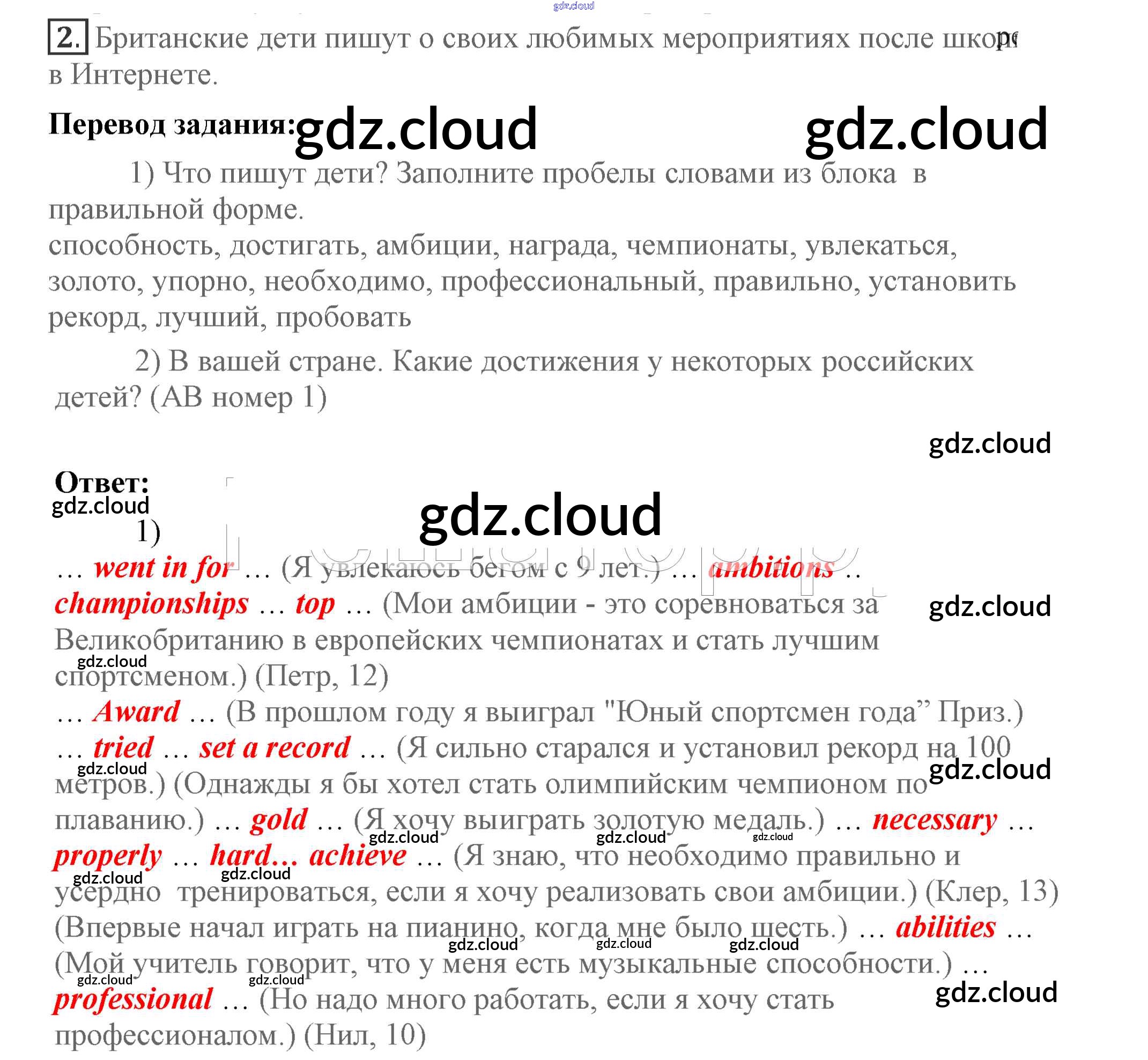 Lesson 1 Ответы к Unit 2. What are you good at? по Английскому языку 7 класс Учебник Кузовлев УМК Просвещение