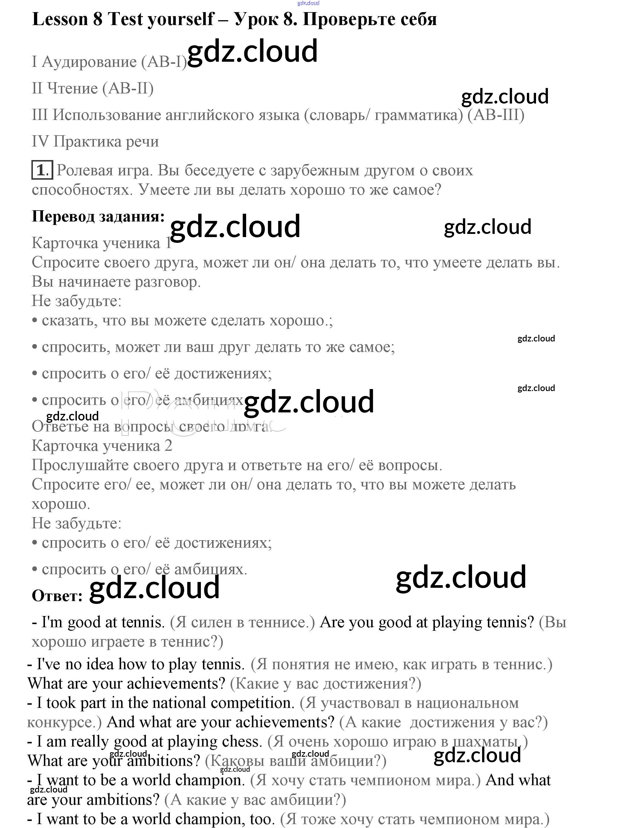 Lesson 8 Ответы к Unit 2. What are you good at? по Английскому языку 7 класс Учебник Кузовлев УМК Просвещение