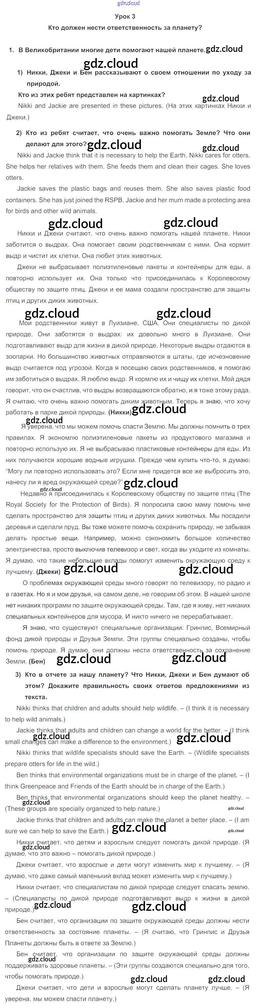 Lesson 3 Ответы к Unit 4. Are you a friend of the planet? по Английскому языку 7 класс Учебник Кузовлев УМК Просвещение