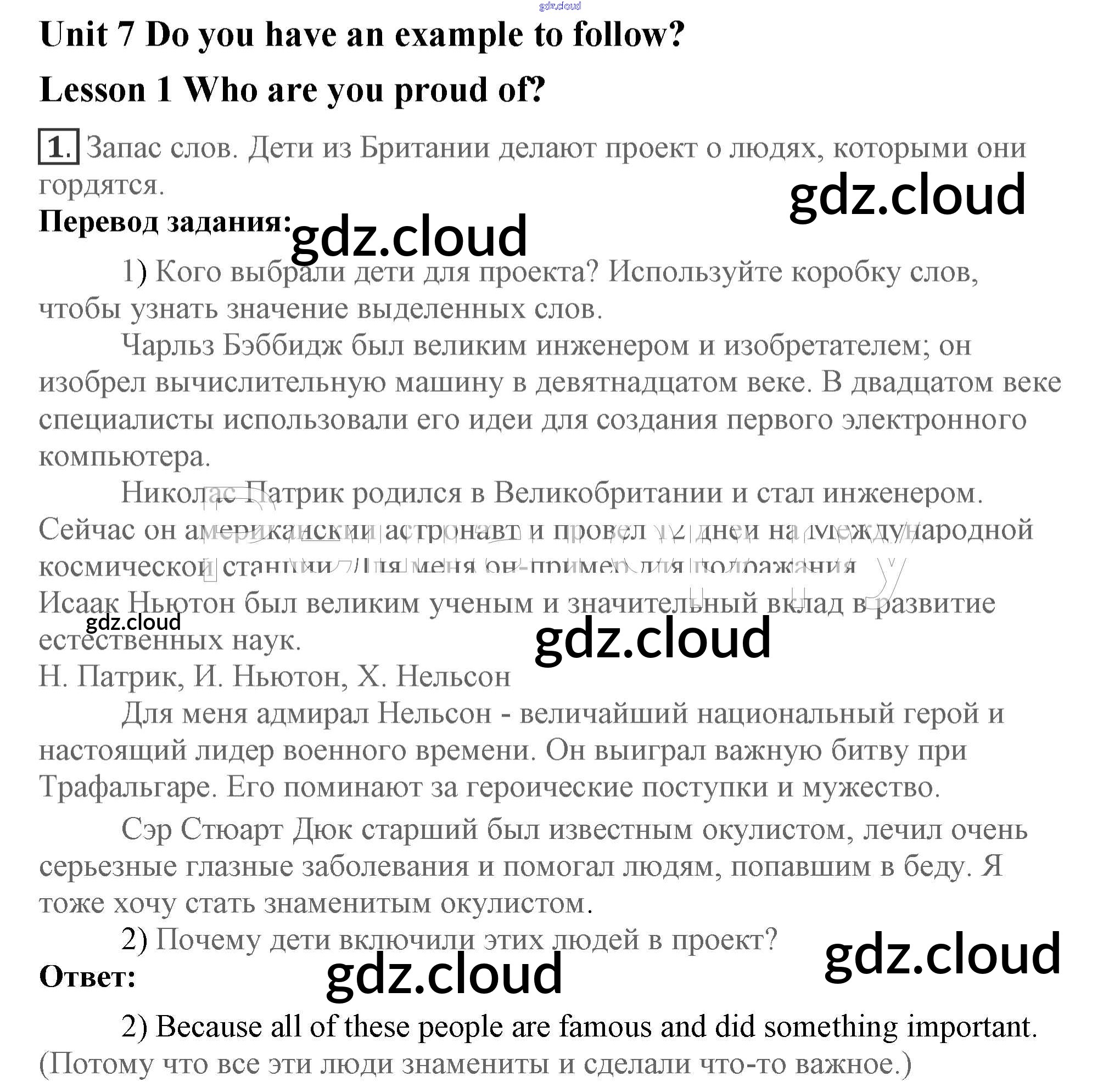 Lesson 1 Ответы к Unit 7. Do you have an example to follow? по Английскому языку 7 класс Учебник Кузовлев УМК   Просвещение