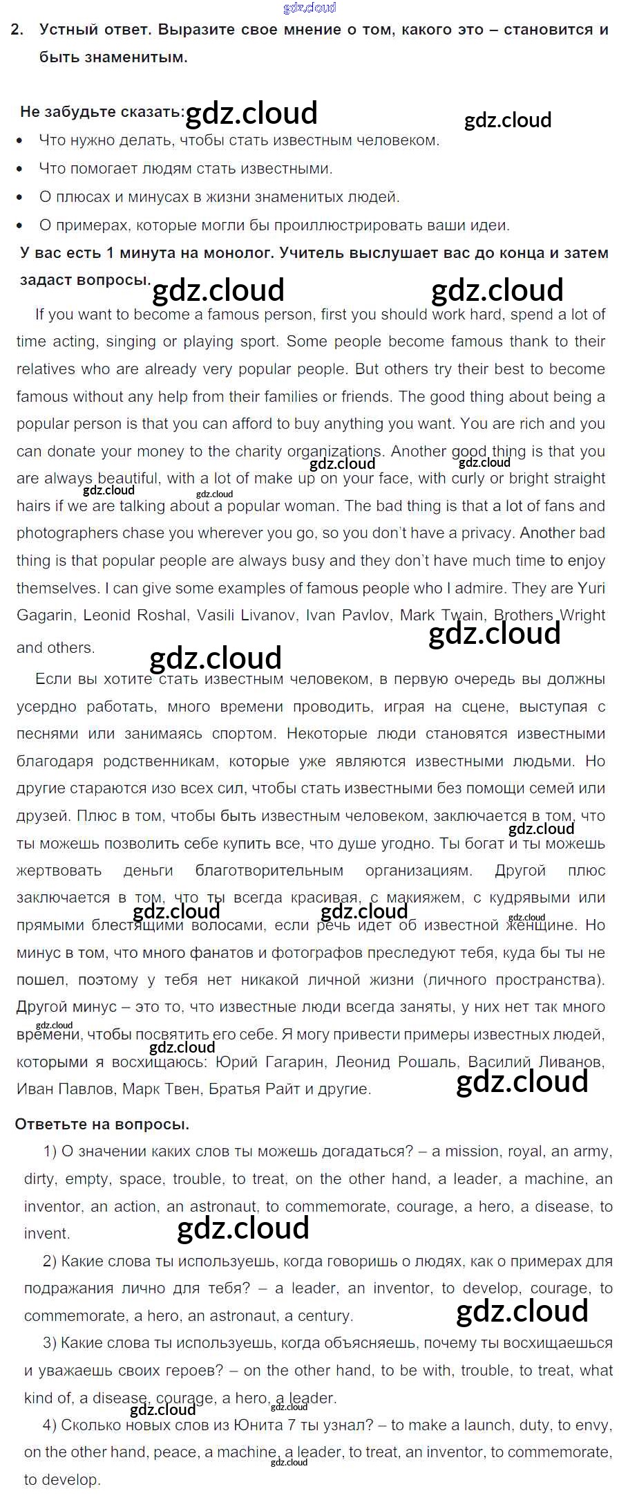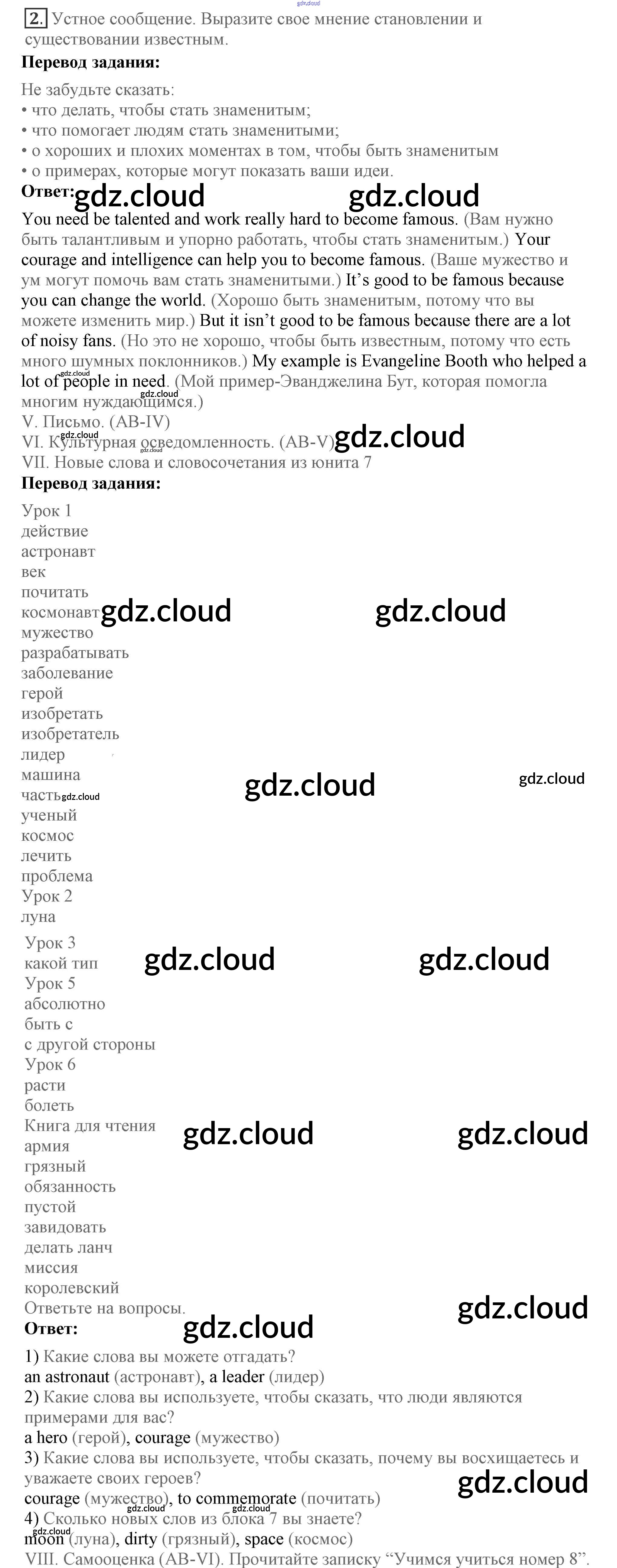 Lesson 8 Ответы к Unit 7. Do you have an example to follow? по Английскому языку 7 класс Учебник Кузовлев УМК Просвещение
