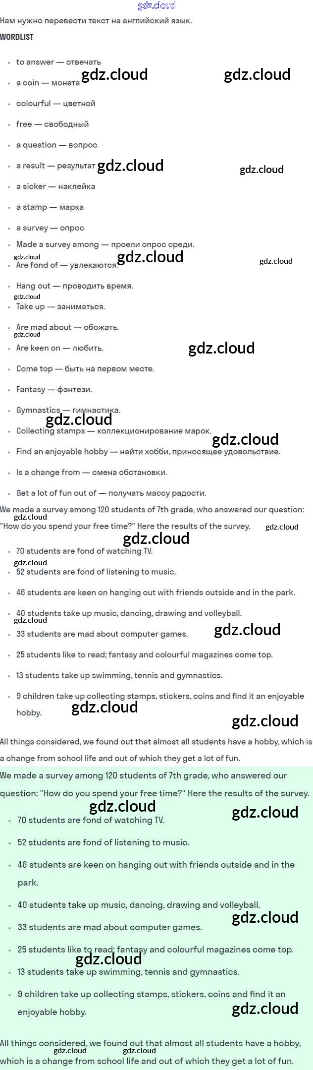 Lesson 1 Ответы к Unit 8. How do you spend your free time? по Английскому языку 7 класс Учебник Кузовлев УМК   Просвещение
