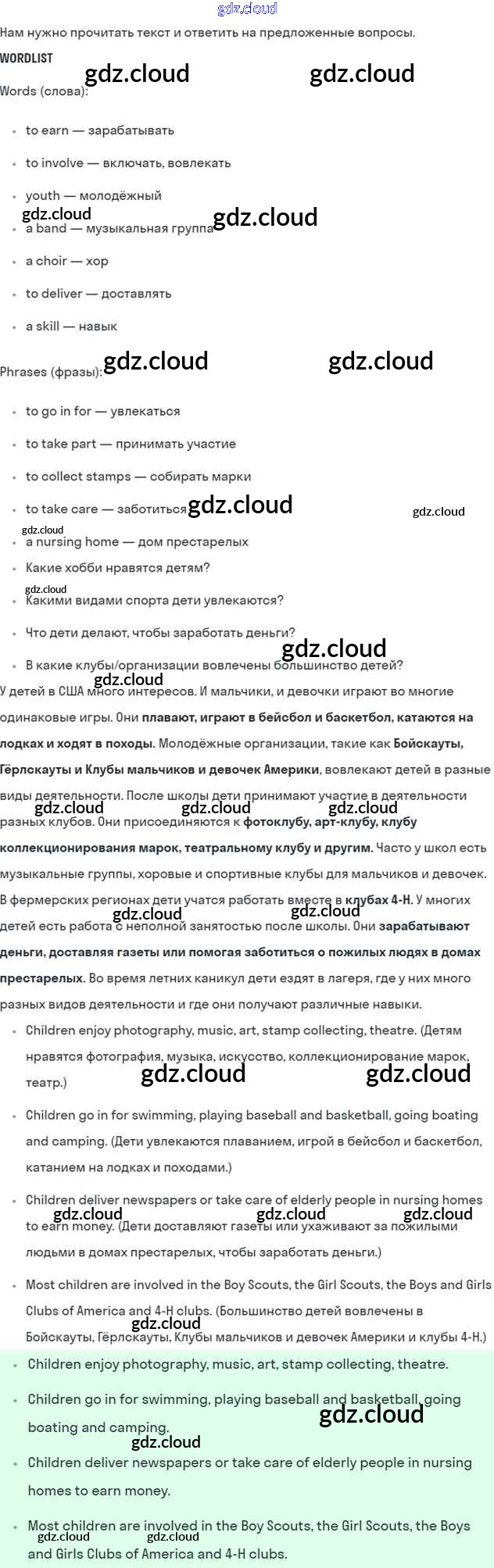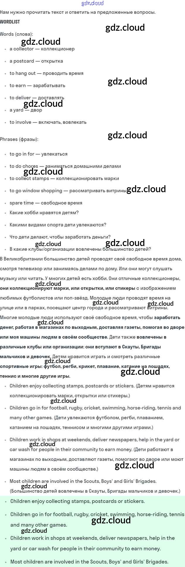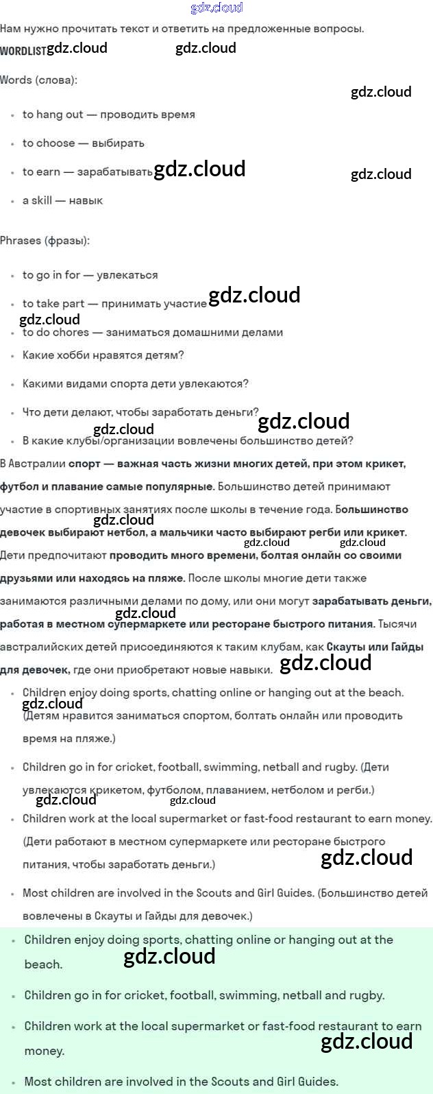 Lesson 5 Ответы к Unit 8. How do you spend your free time? по Английскому языку 7 класс Учебник Кузовлев УМК   Просвещение